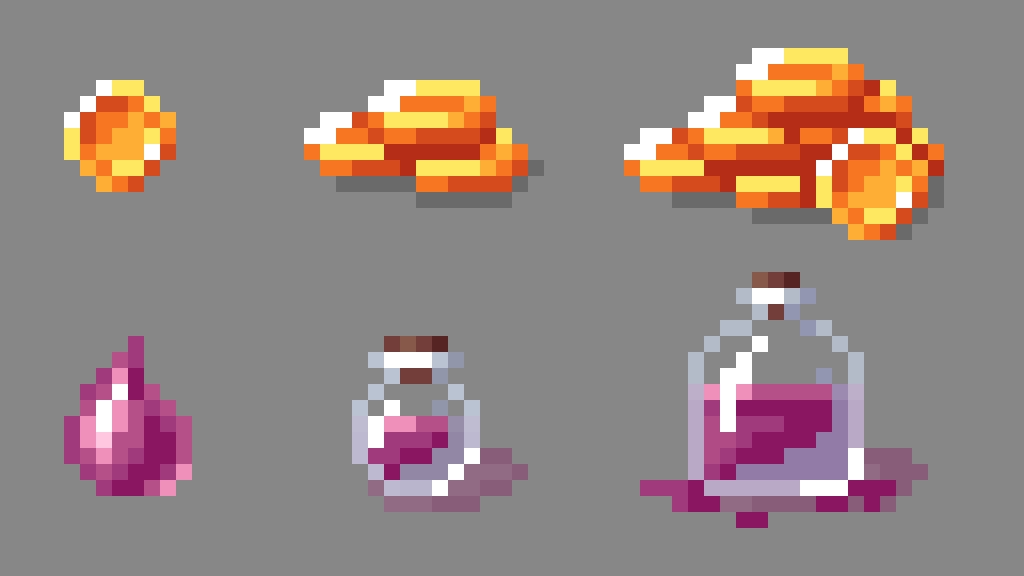 Спрайты монет и зелий для небольшой игры