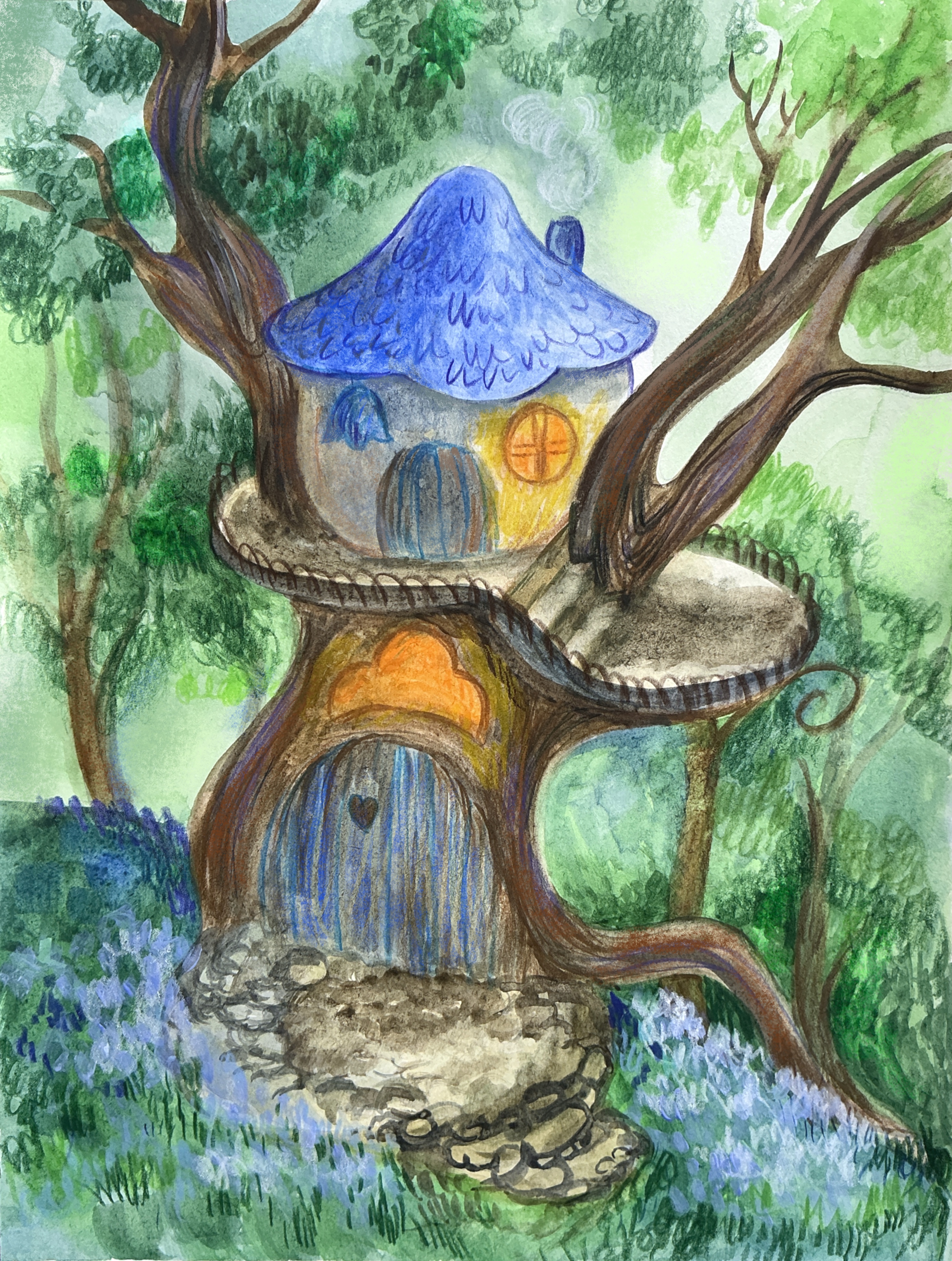 Сказочный домик. работа выполнена в технике акварель плюс цветные карандаши.