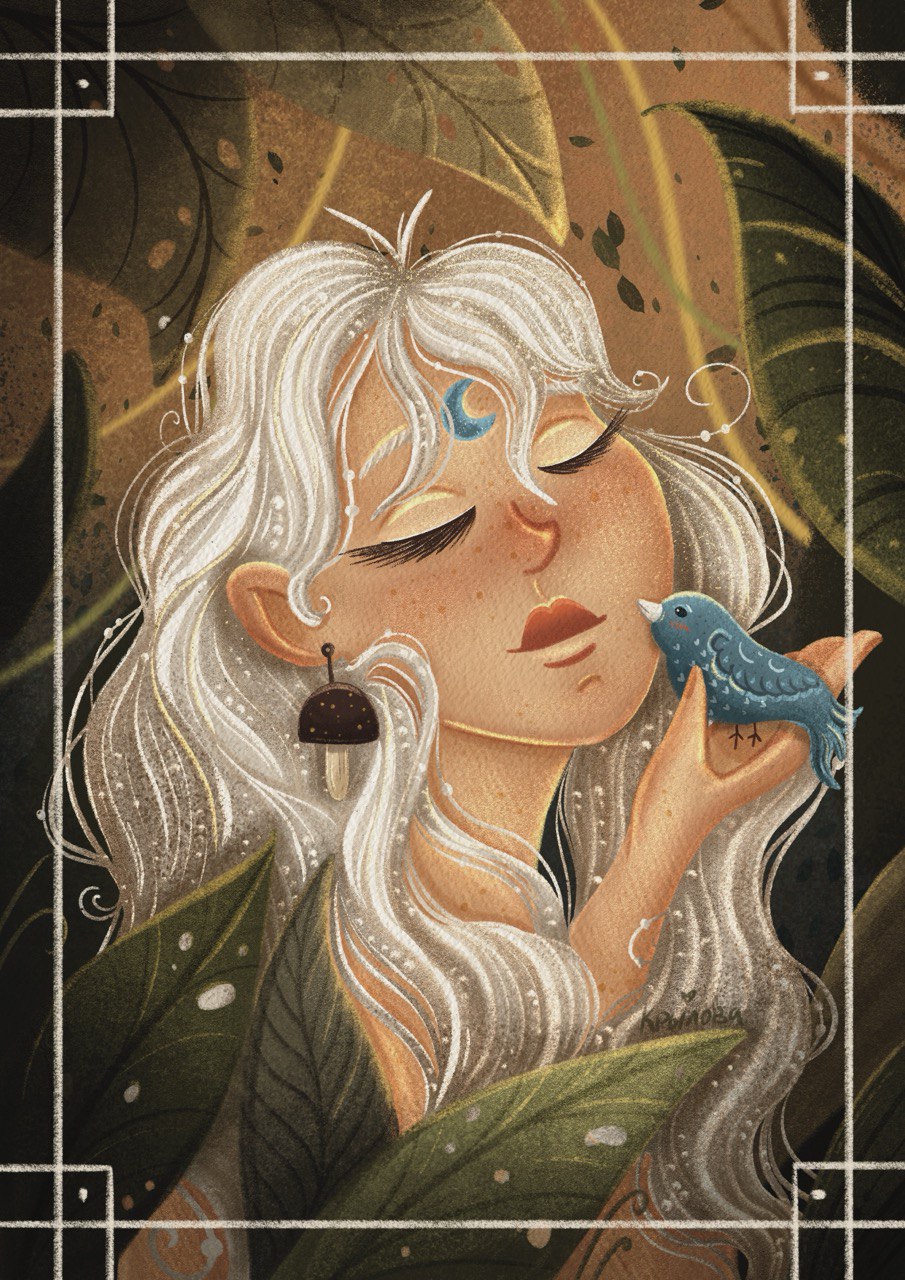 «В тёплом лесу, где трава шелестит сказками, жила девица с белыми, как первый снег, волосами и синим знаком луны на челе - звали её Лунария. Она умела понимать язык птиц и деревьев»