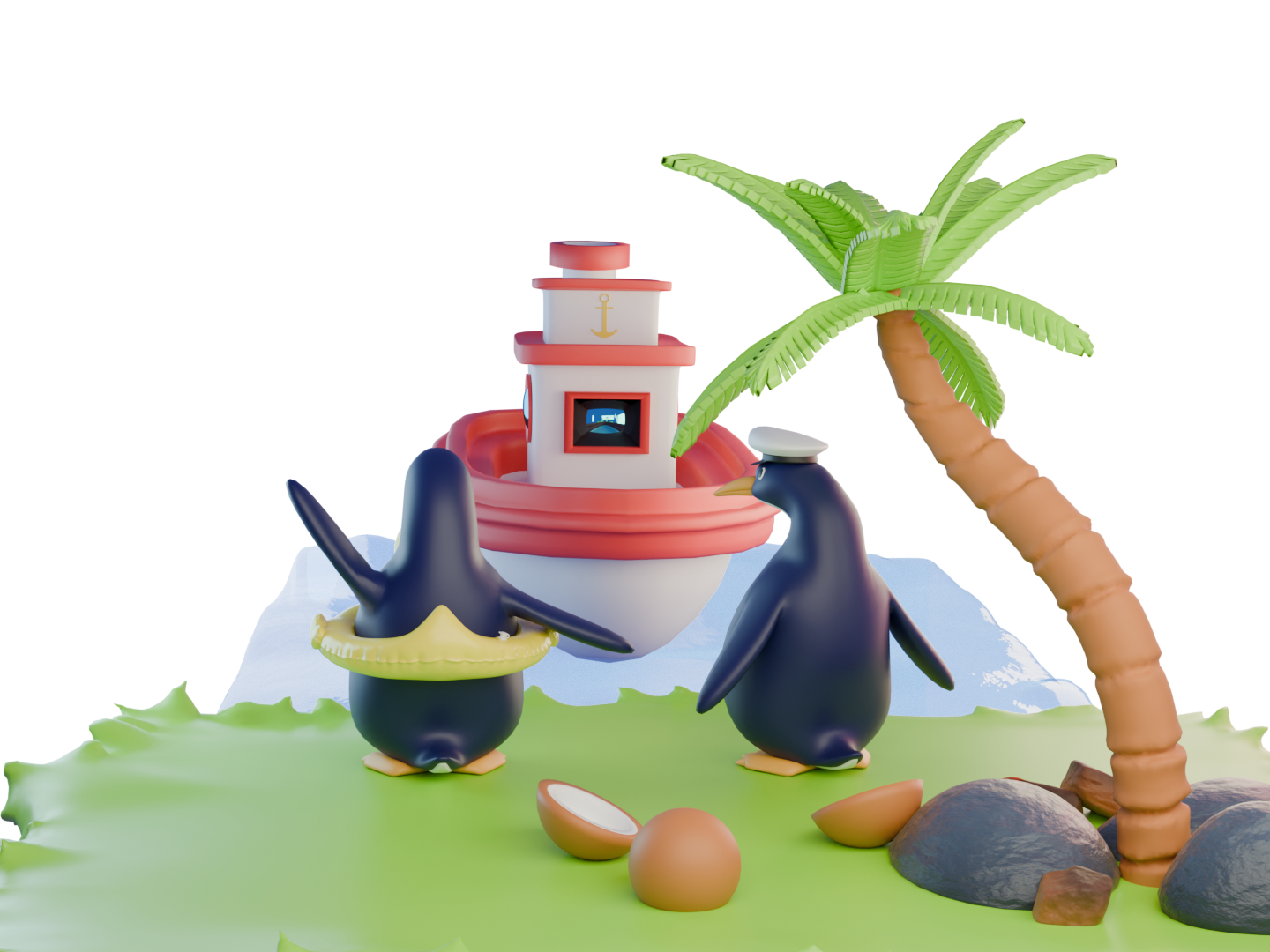 3D-иллюстрация "Пингвины" создана с помощью программы Blender 3D. Часть большого проекта "Аквариум"