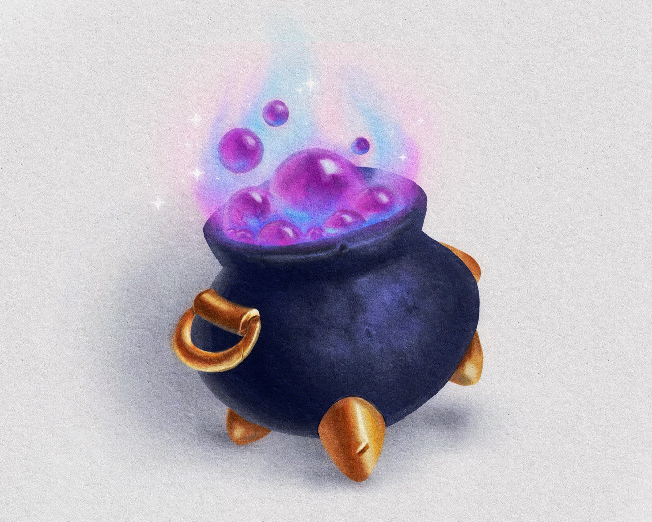Эта иллюстрация изображает волшебный котёл с кипящим зельем, наполненным сияющими пузырями и мистическим свечением. Работа выполнена в цифровой технике с вниманием к свету, текстурам и атмосферным эффектам, что придаёт изображению глубину и магическое настроение. Такой стиль идеально подходит для издательских проектов, книжных иллюстраций, концепт-арта и игровых ассетов.
