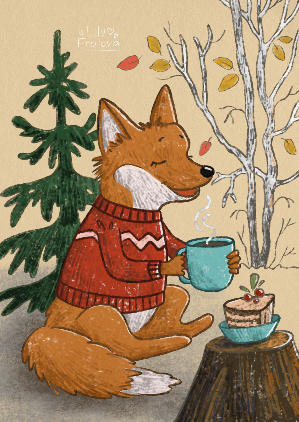 Лисичка пьет чай и думает о вечном)