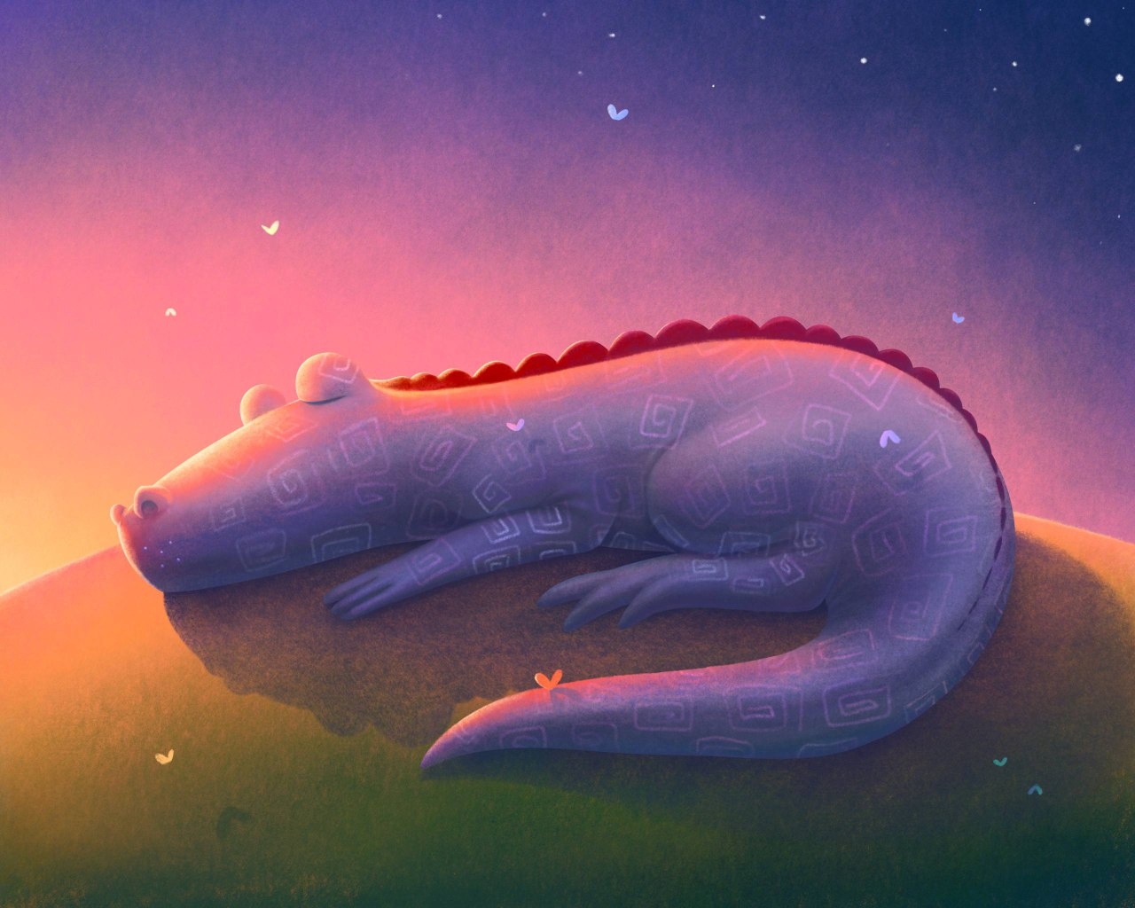 Серия иллюстраций про маленького (относительно) драконо-яшера. Закат.