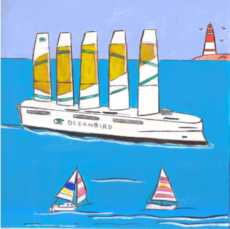 В журнал "А почему?" Рубрика" Со всего света". Редакция-Юный техник. Опубликовано в журнале. Иллюстрация с расчётом на уменьшение при печати. Тема: Современный парусник. Художник: Марат Брызгалов.