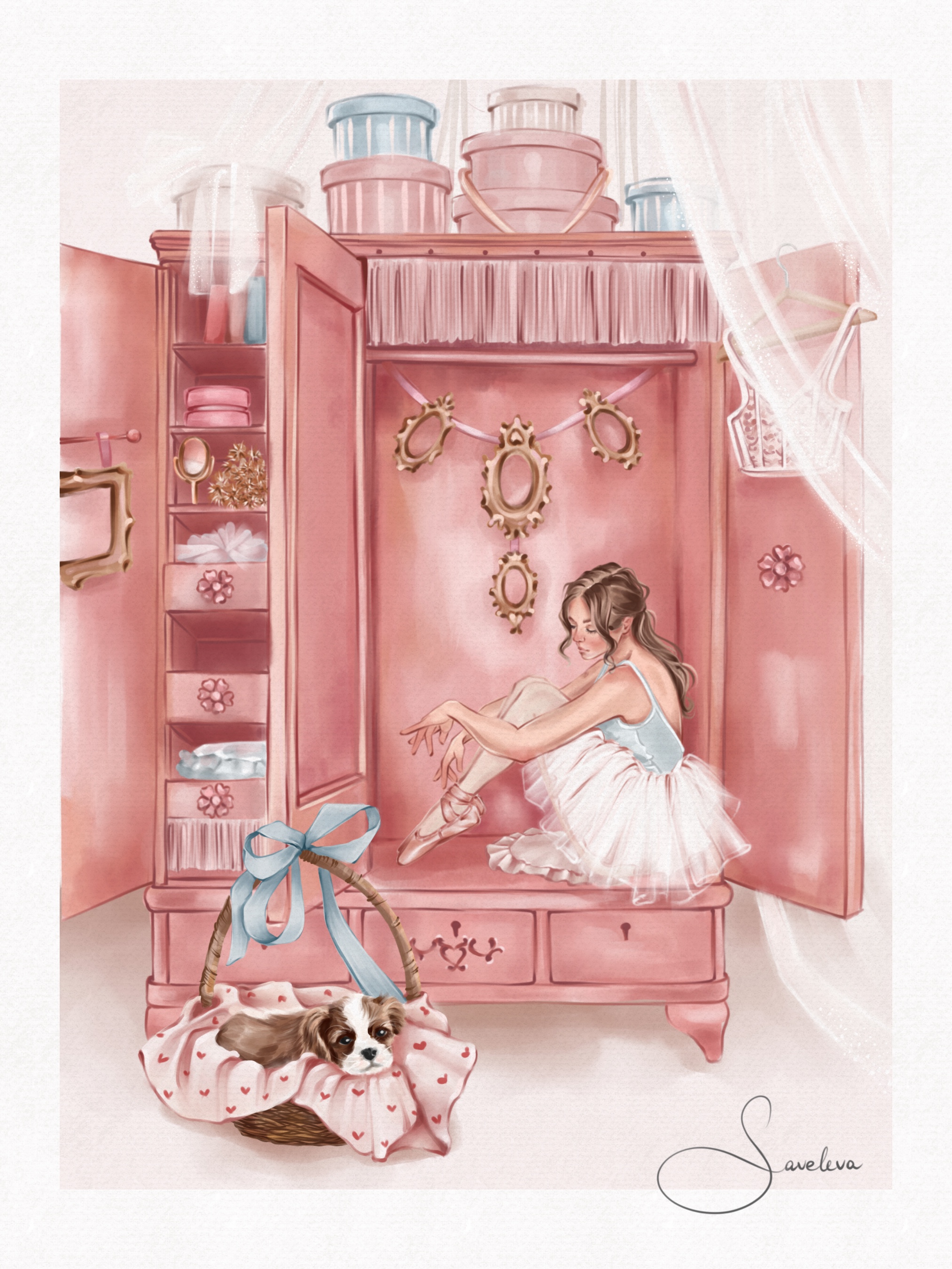 Иллюстрация с балериной и собачкой