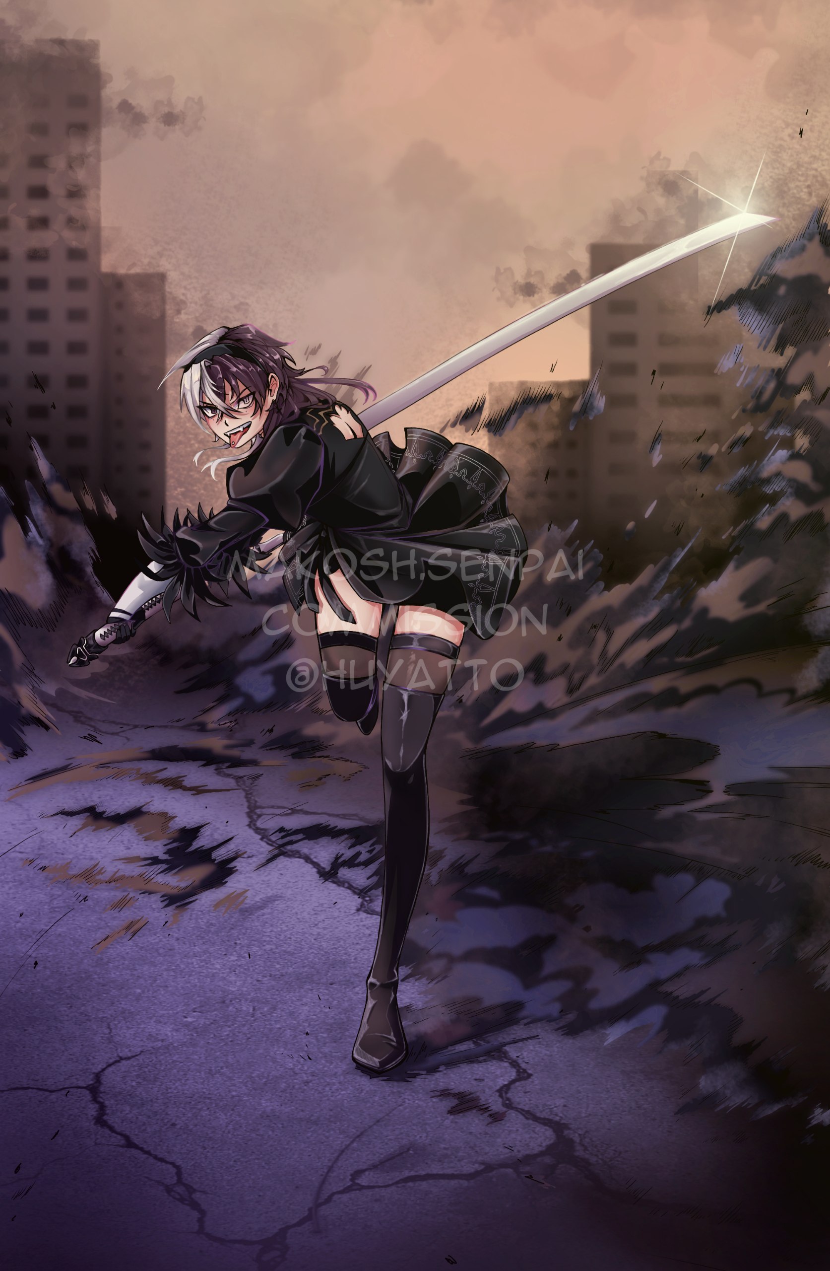 Рисунок в поднорост персонажа заказчика в костюме из игры Nier: Automata