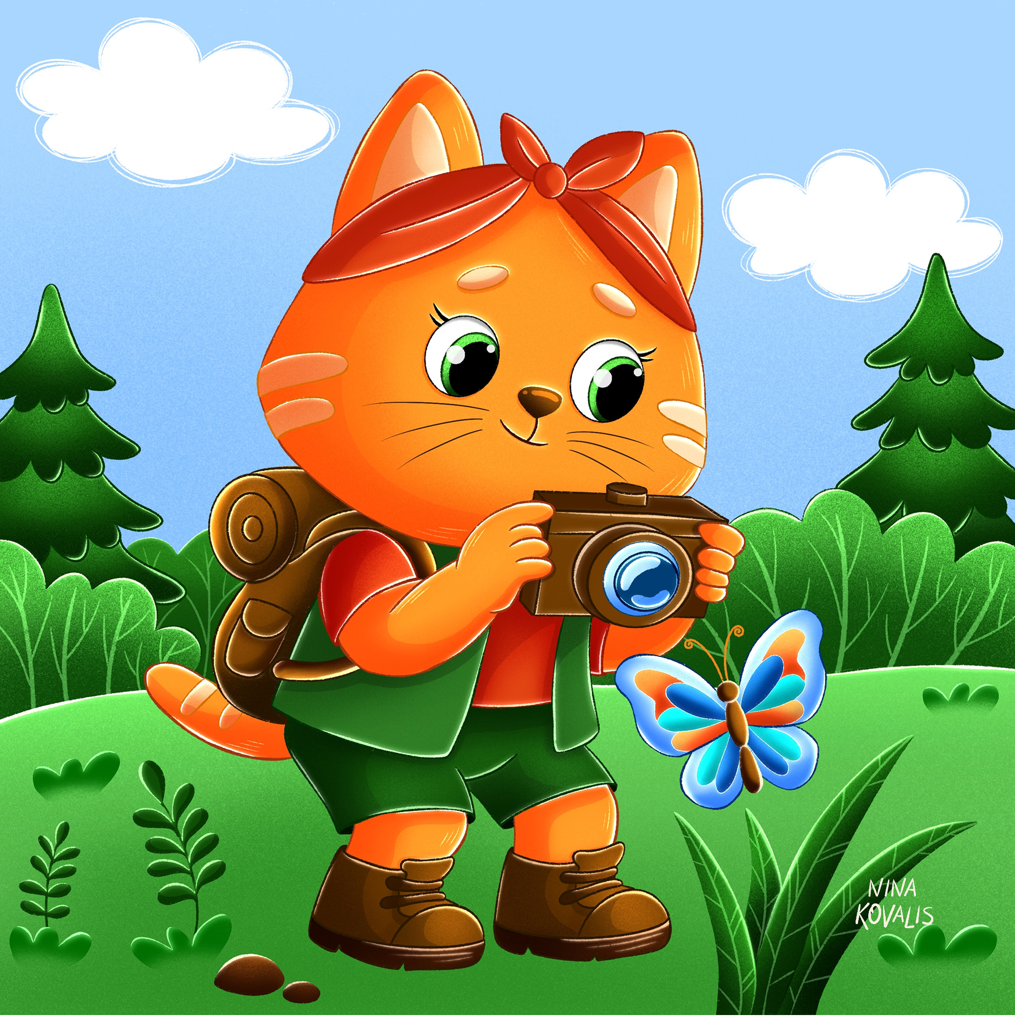 Иллюстрация для детского стикерпака "Лето в лагере"