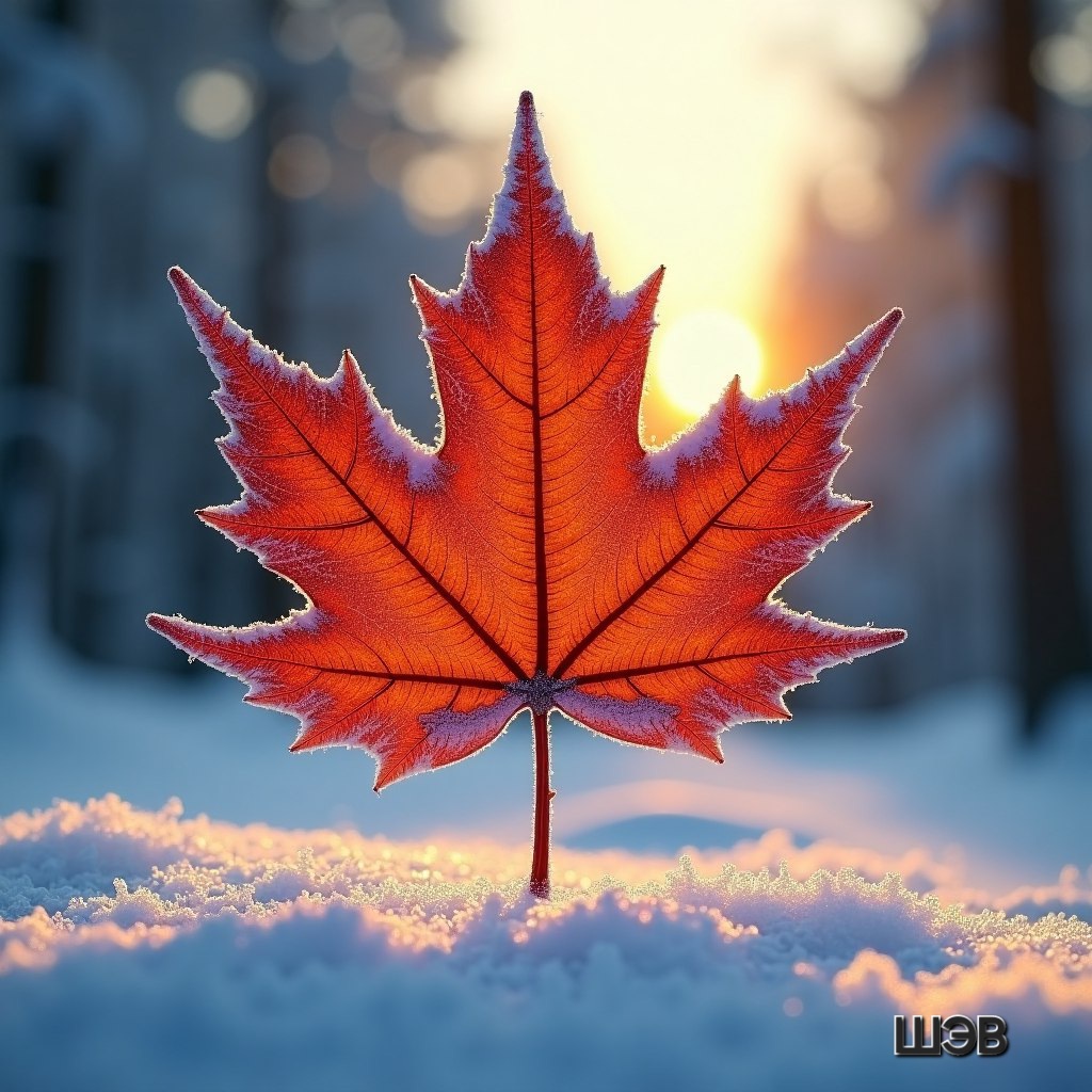 Кленовый лист на снегу.
