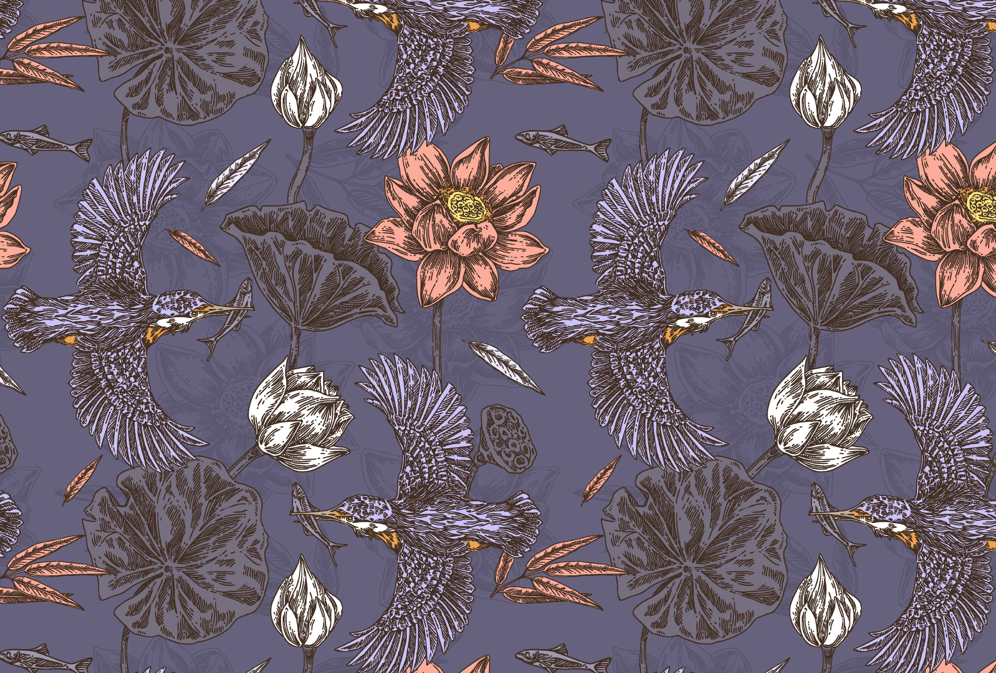 паттерн с зимородками и лотосами