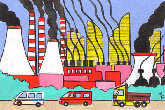 Иллюстрация для детского журнала" Левша". Редакция "Юный техник". Рубрика-"Задачи Левши". Статья о проблемах экологии о и борьбе с промышленными выбросами загрязнений воздуха. Опубликовано в журнале.