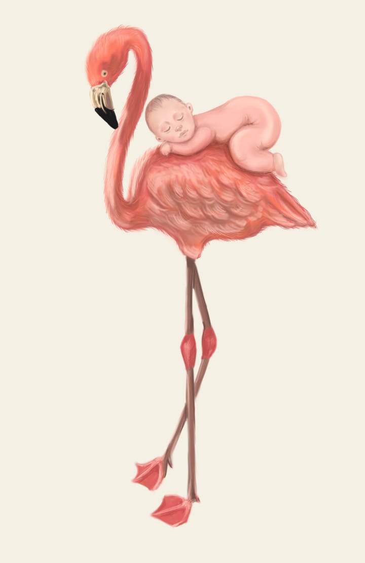 Фламинго и малыш
