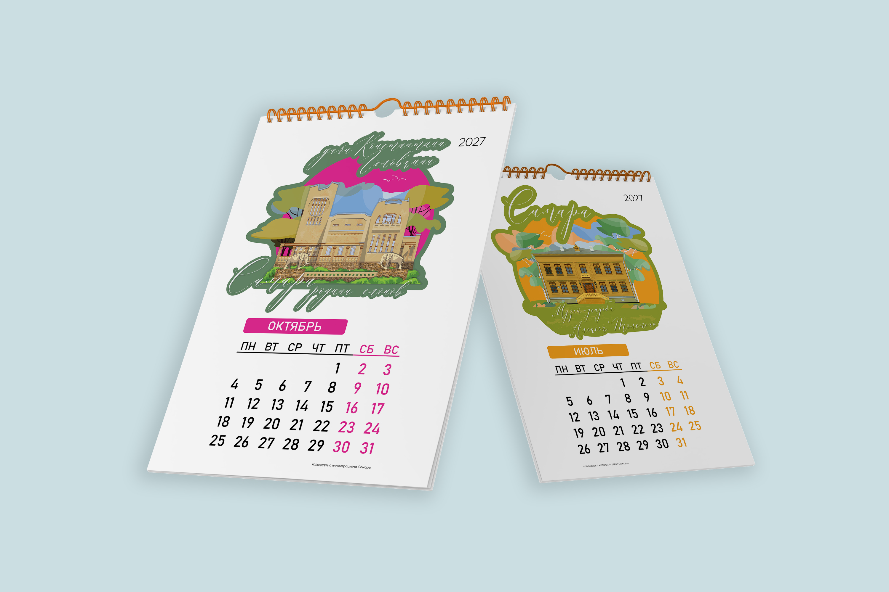 САМАРА календарь с векторными иллюстрированными достопримечательностями