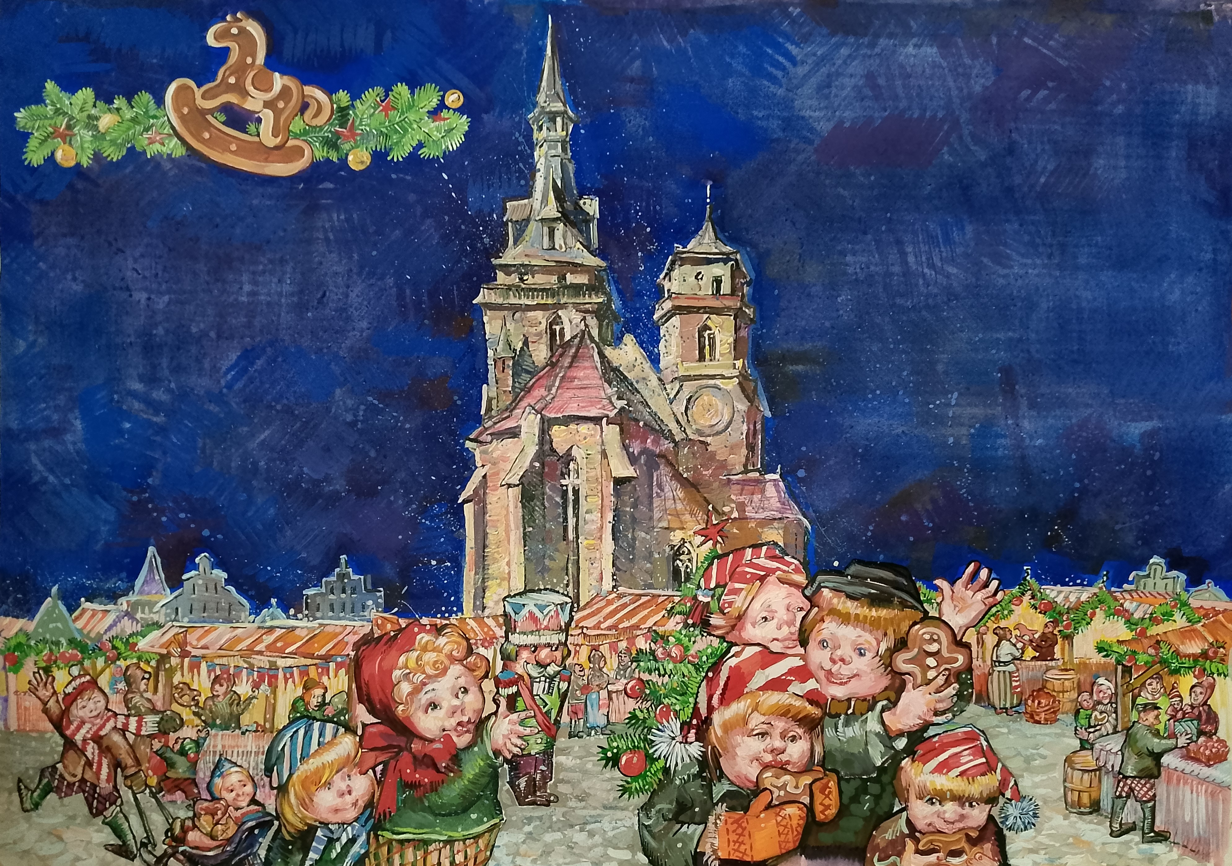 А Стрельников (писатель, автор текста): "Великолепная иллюстрация, передающая очарование рождественской ярмарки, ожидание волшебства. Доминантой является изображение Штифтскирхи в Штутгарте. Таким образом иллюстрация неразрывно связана со стихотворерием на швабском диалекте о штутгартской рождественской ярмарке. Стилистическое решение иллюстрации полностью соответствует теме."
