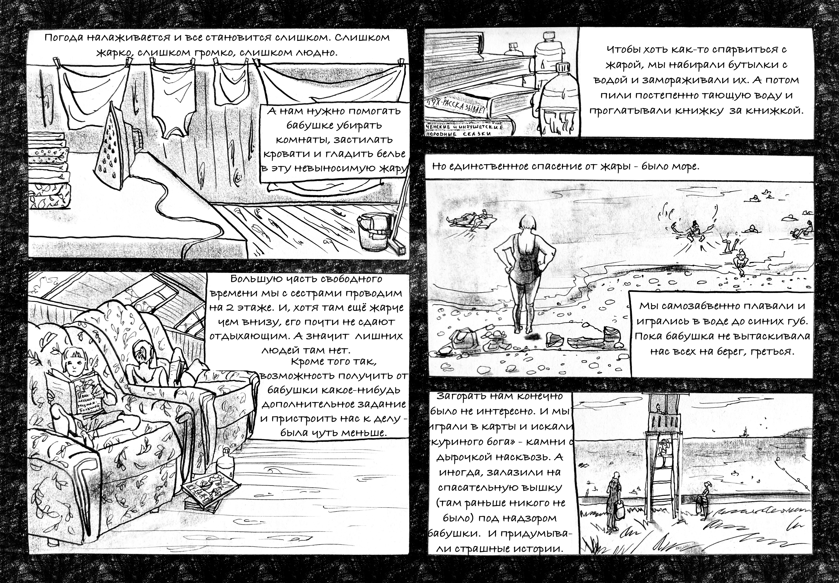 Мой личный проект о летнем детстве в деревне. Тушь и трафарет маслом.