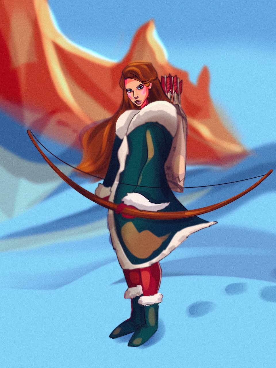 Девушка с луком в горах, работа выполнена для инктобер 2025