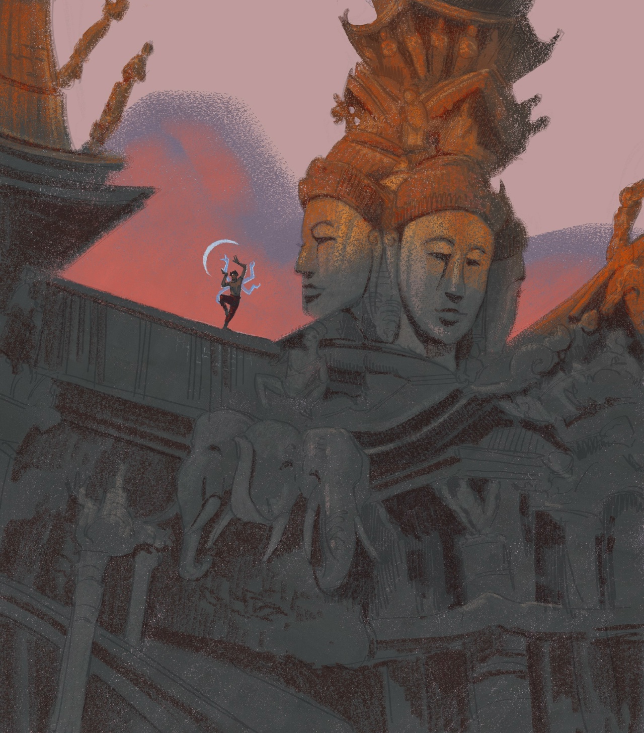 Иллюстрация созданная в рамках челленджа "Архитобер 2025", где главной целью было нарисовать данные архитектурные сооружение. Я немного внесла сюжета в иллюстрацию.