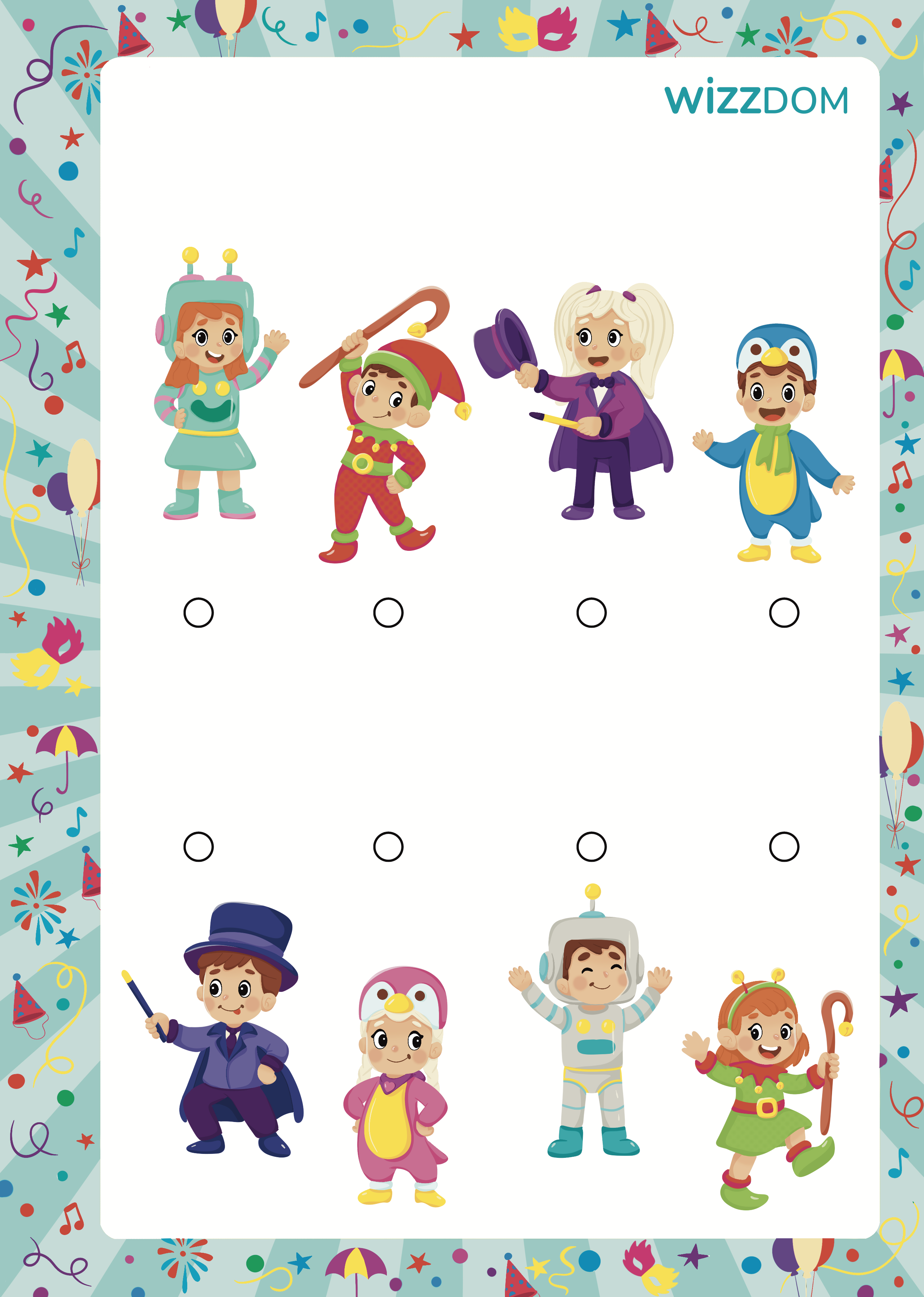 Карнавальные костюмы: найди пару — развивающее задание для детей