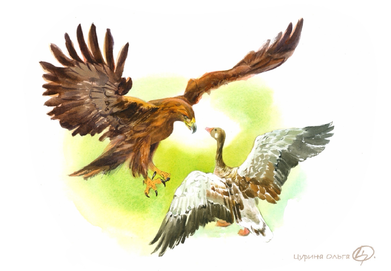 Гуси высыпали из гнёзд и приветливо закивали орлу.
