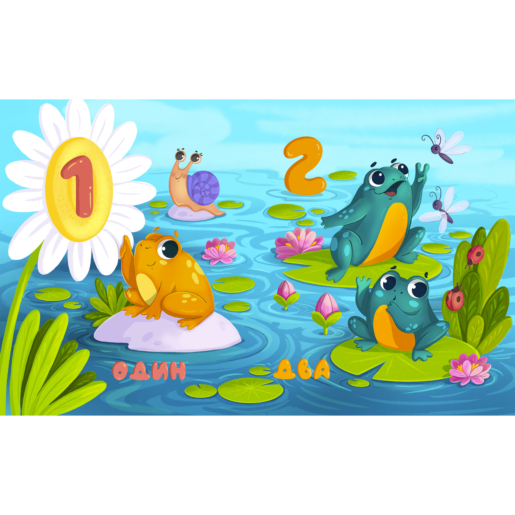 Разворот книги "Веселый счет забавных лягушат".