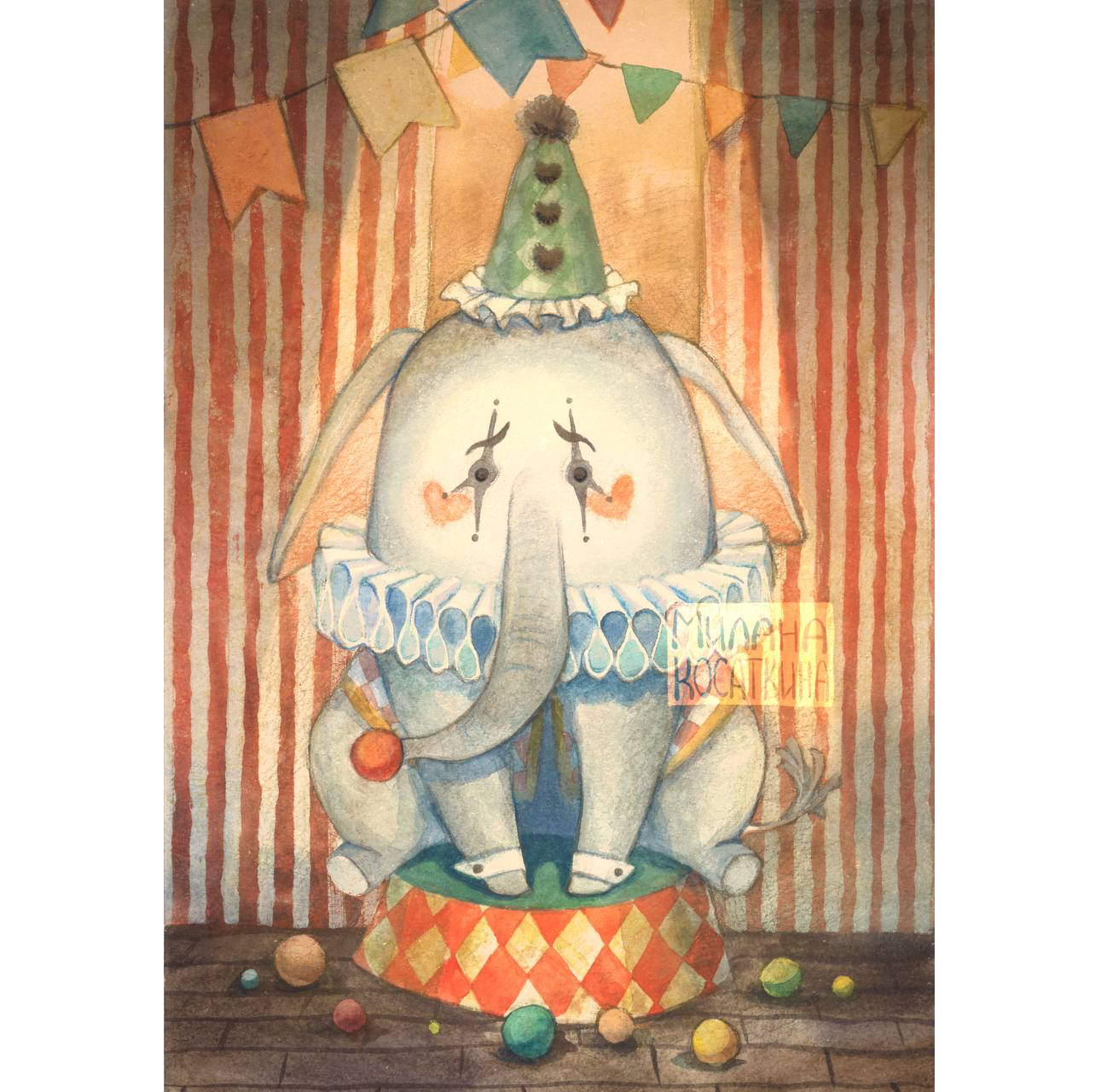 Иллюстрация про цирк. Слоненок