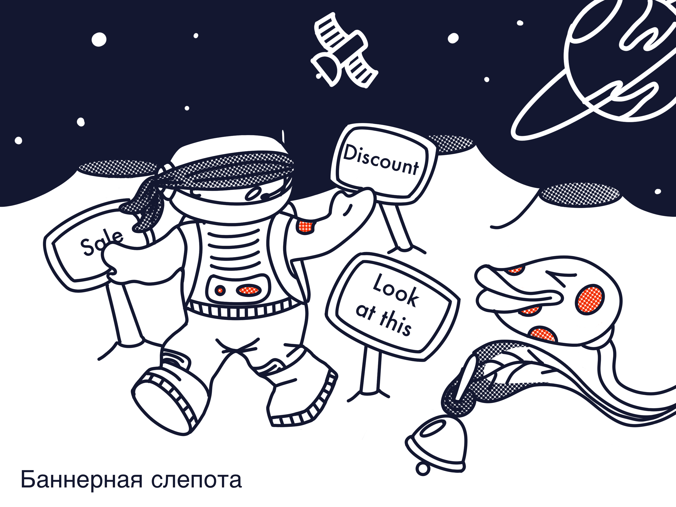 Иллюстрация к статье как начинающим предпринимателям обходить на ресурсах баннерную слепоту клиентов.