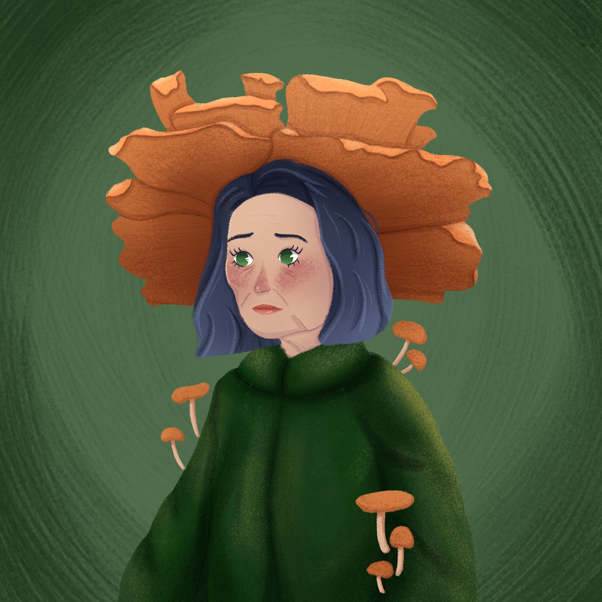 Бабушка в лисичках. Inktober.Уютные скетчи