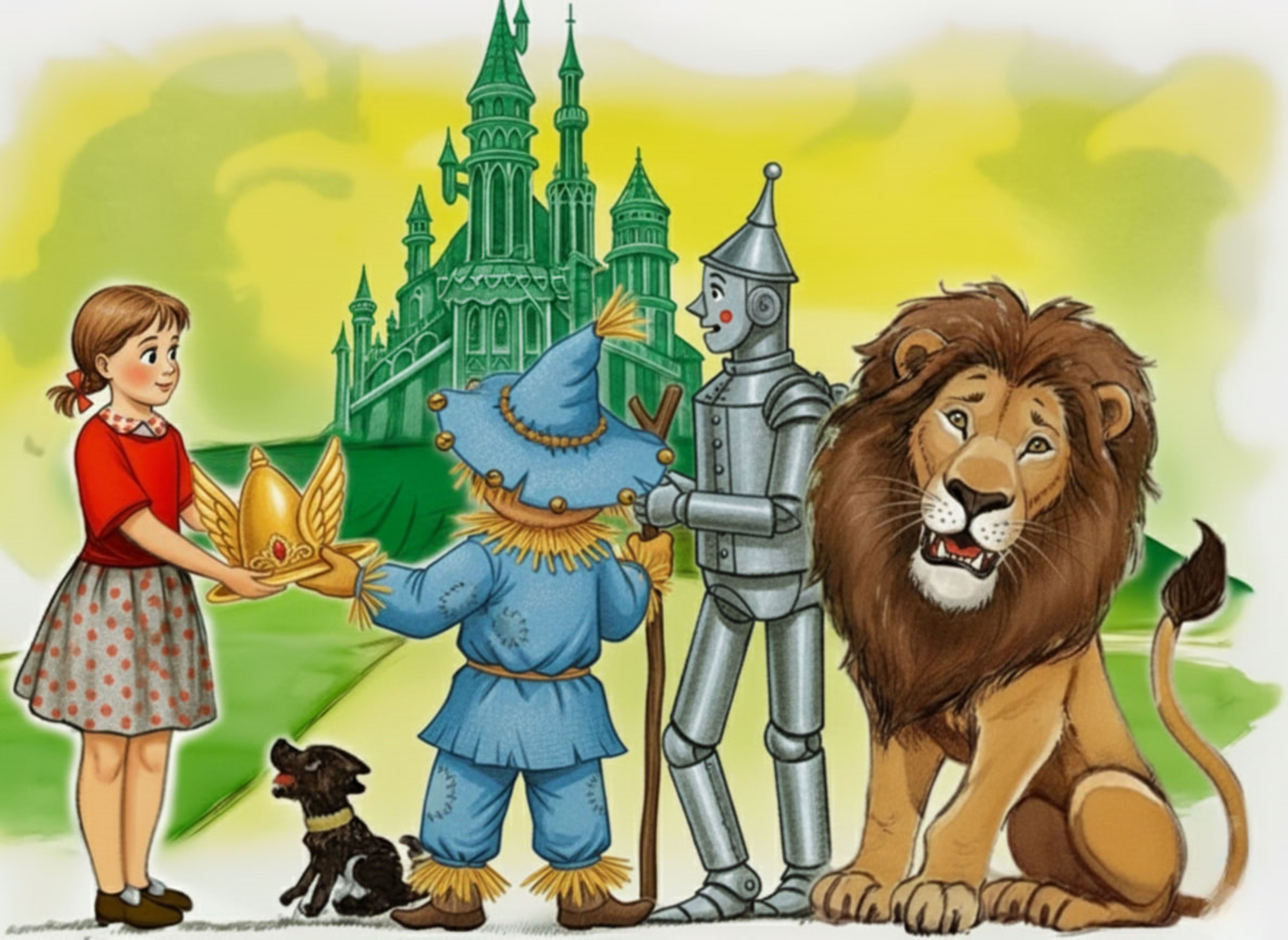 иллюстрация к сказке Волшебник Изумрудного города-Элли показывает друзьям Золотую Шапку