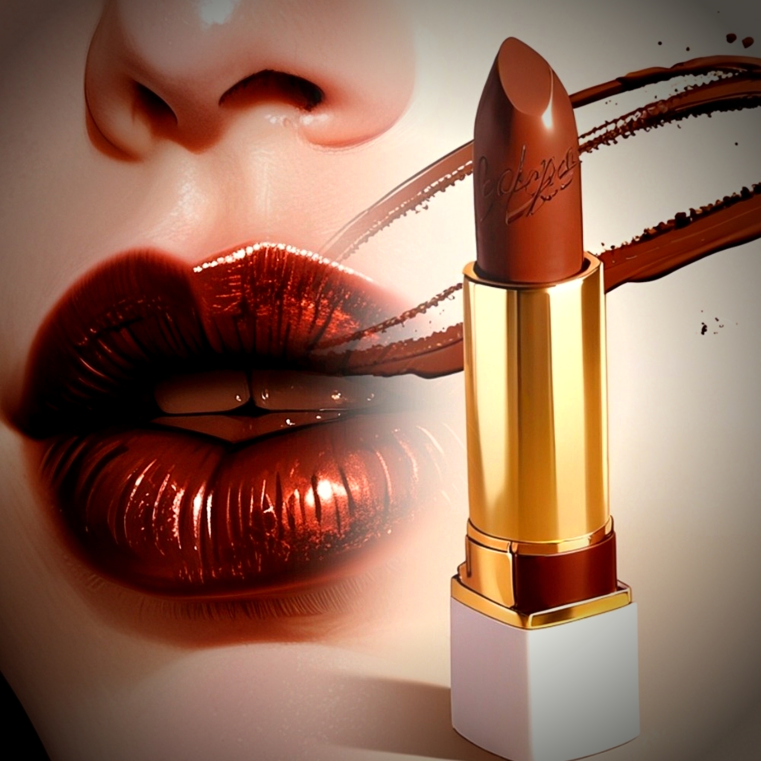 Иллюстрация красно-коричневой губной помады