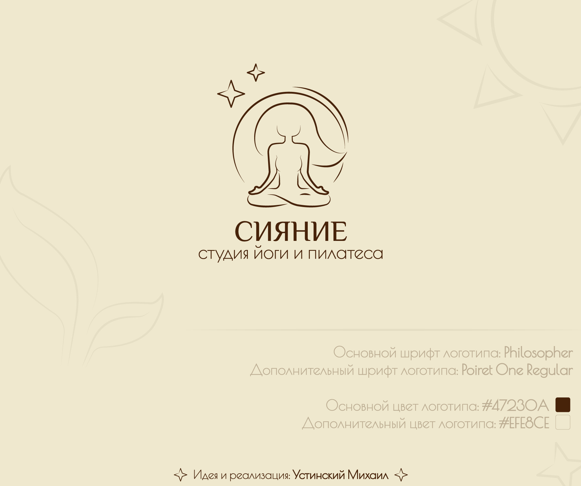 Логотип студии йоги и пилатеса. Выполнен в оттенках бежевого и минималистичном дизайне.