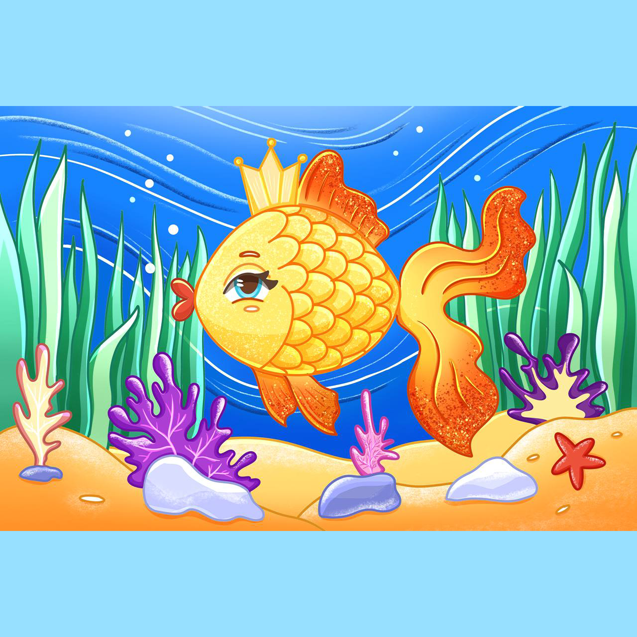Иллюстрация золотая рыбка для детских макси-пазлов.