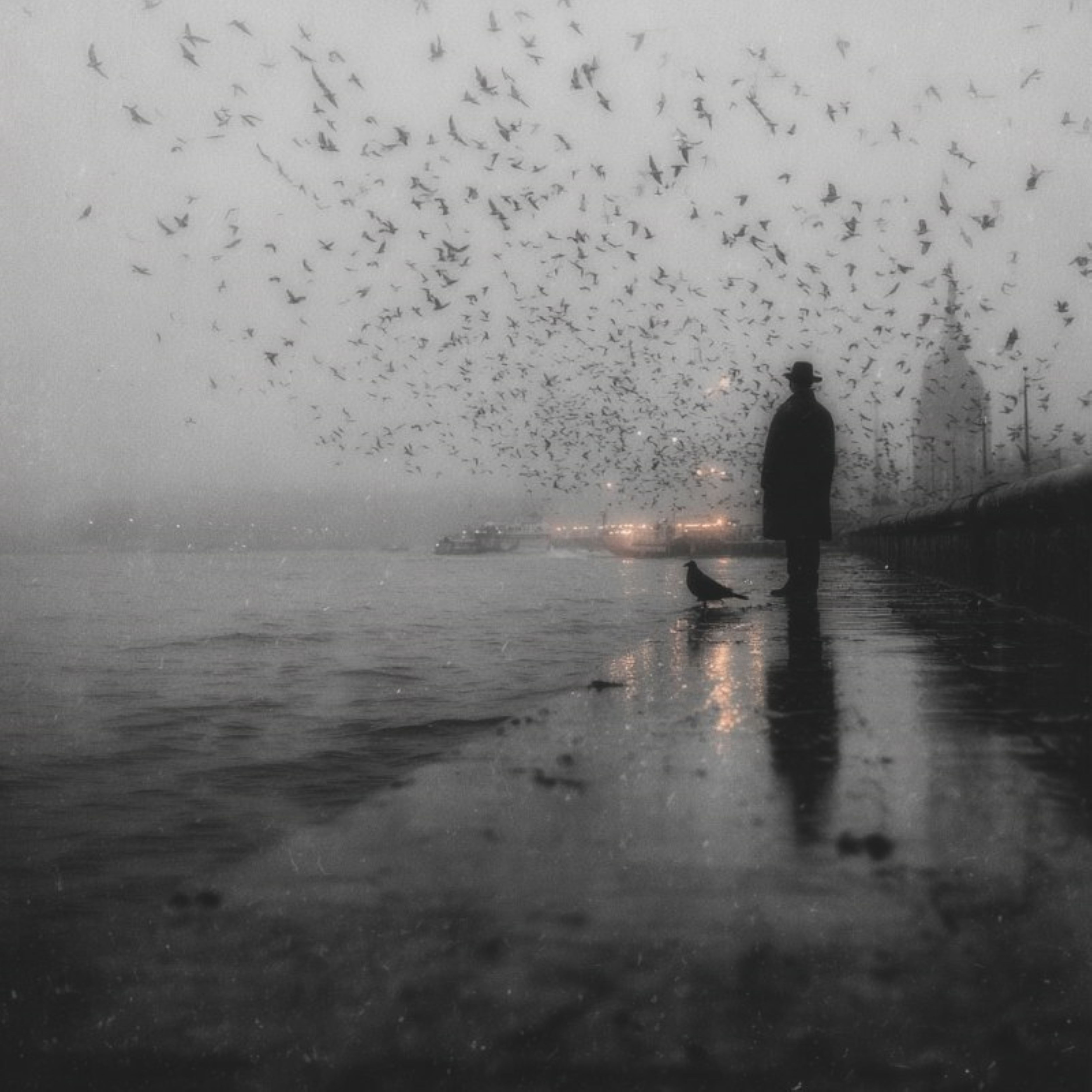 утро на реке в осеннюю погоду , над рекой летают птицы