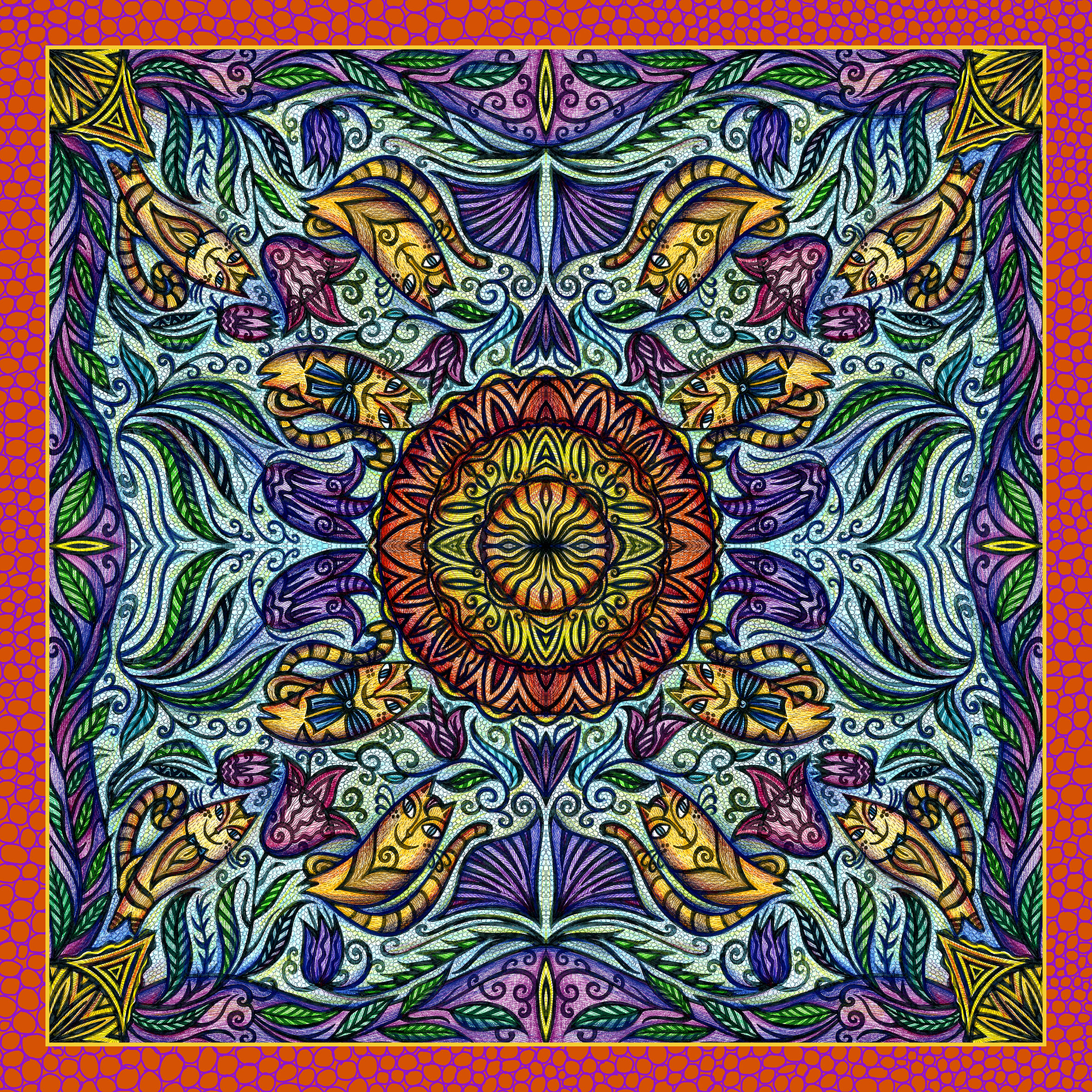 Платок "Коты-цветы"