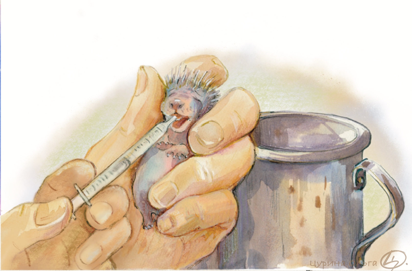 «Дядя Ваня приоткрыл ёжику рот и влил туда несколько капель воды.»