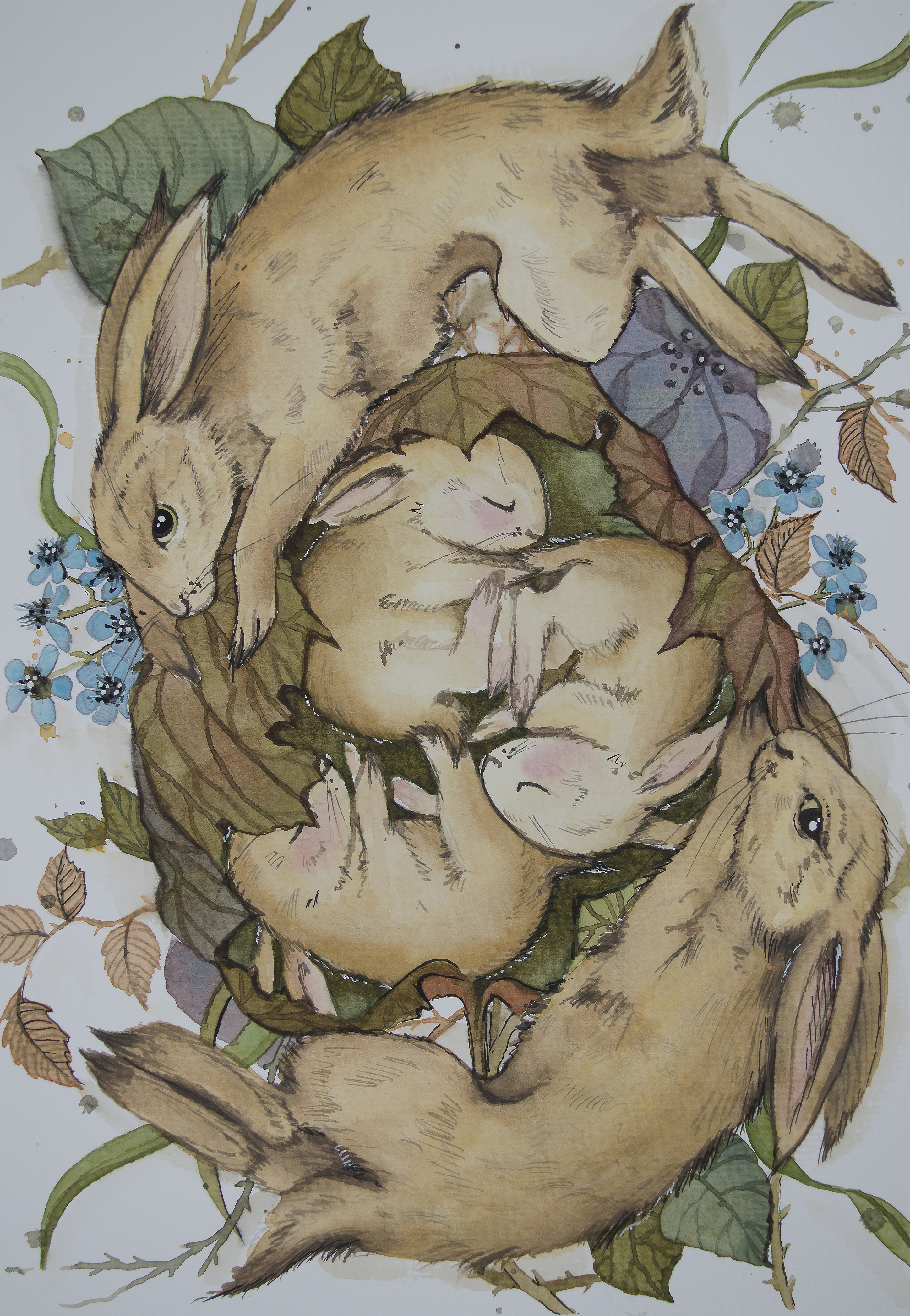 Зайцы. Акварель