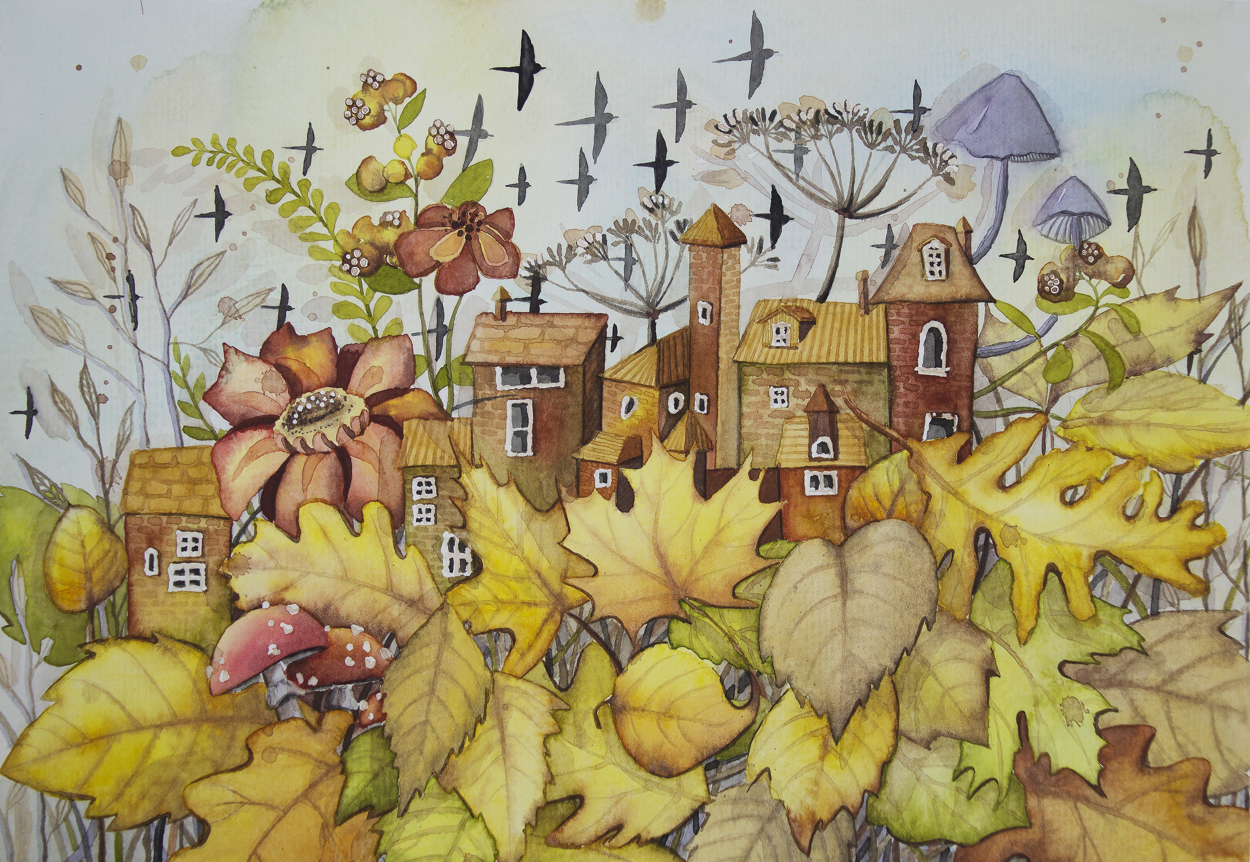 Октябрь. Акварель