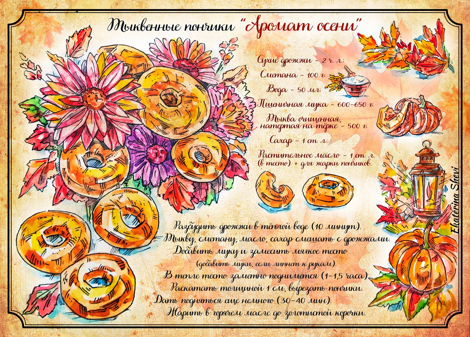 Акварельный рецепт "Тыквенные пончики"