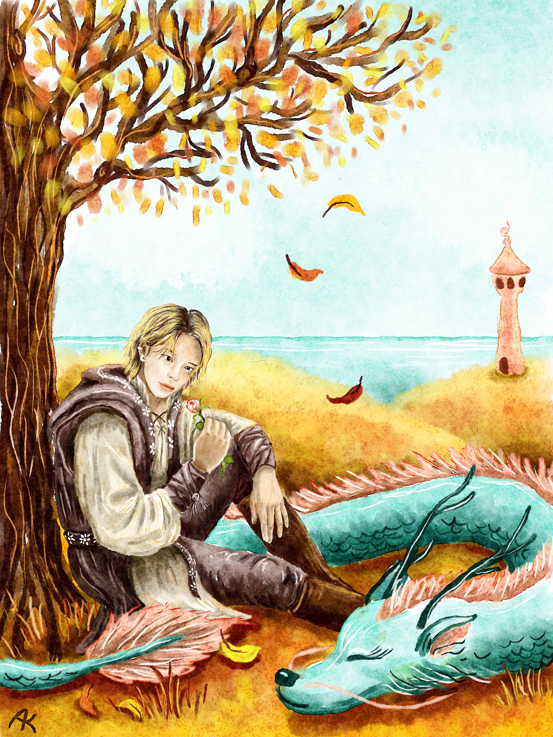 Принц волшебной страны отдыхает со своим драконом под деревом. Принц - тонкая поэтическая натура, любит побыть один на природе, насладиться покоем и тишиной вдали от мирской суеты. Набравшись сил, друзья опять отправятся на поиски приключений.