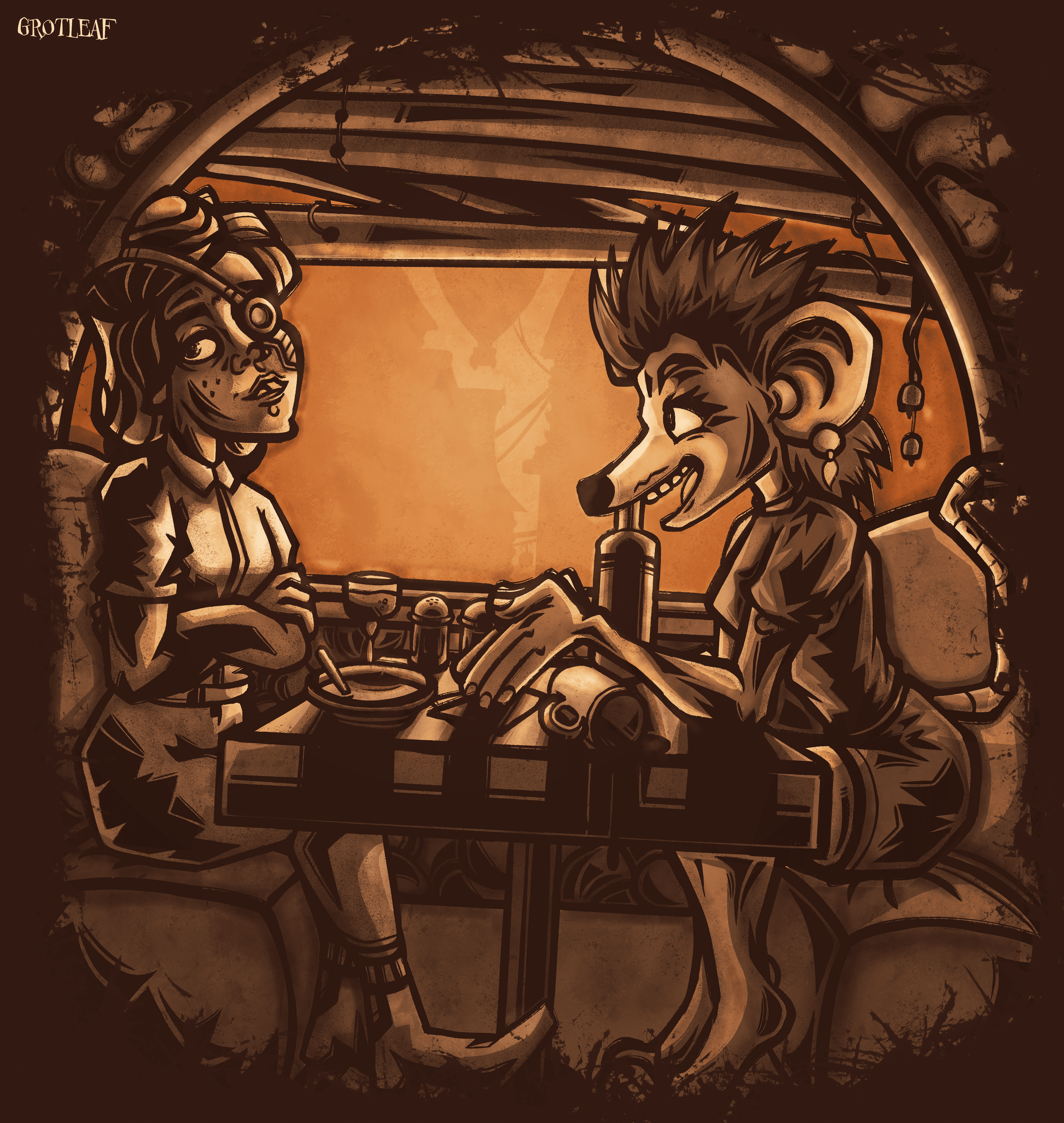 Подружки ужинают в мире стимпанка, где некоторые странности воспринимают как данность.