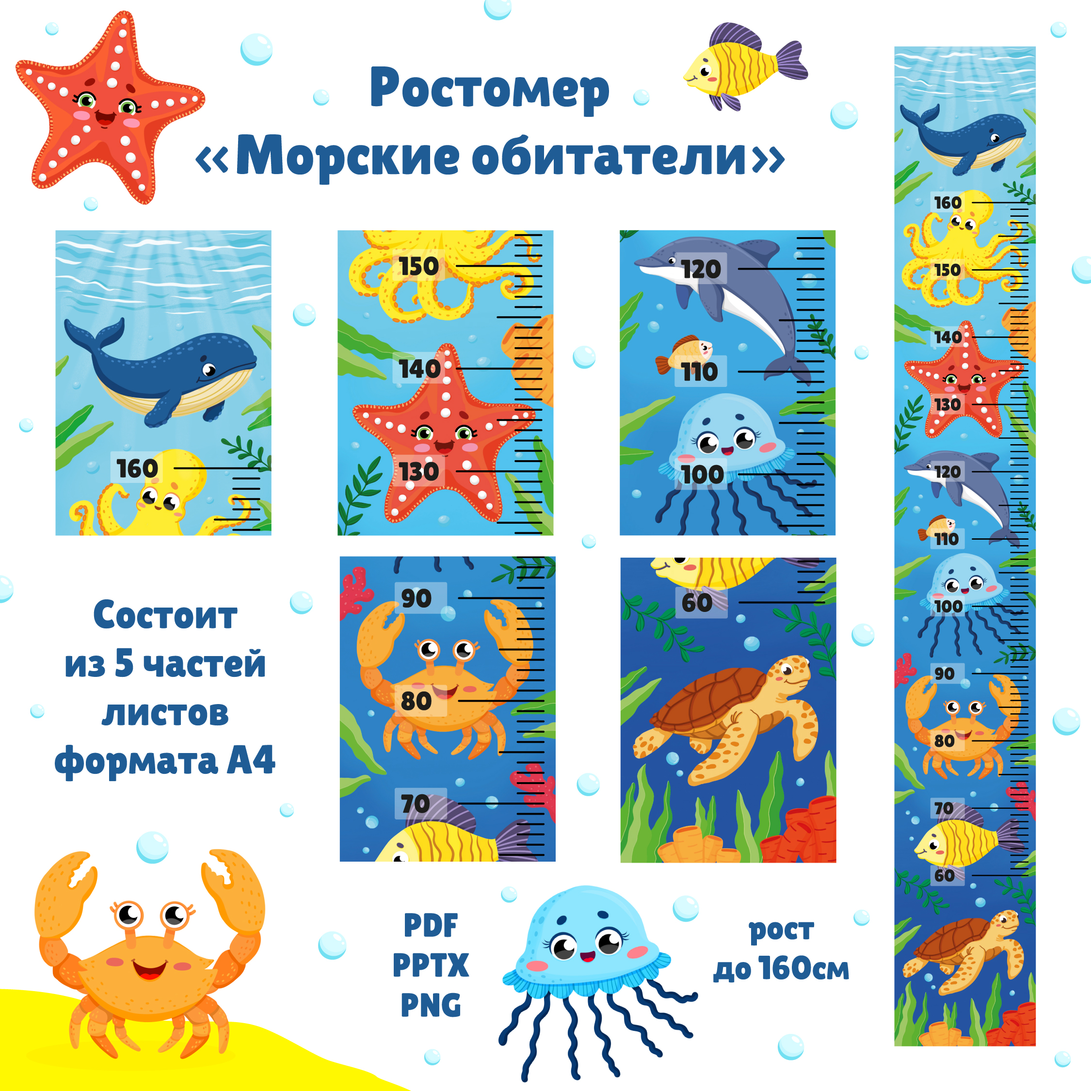 Красочный ростомер для детей в морской тематике.