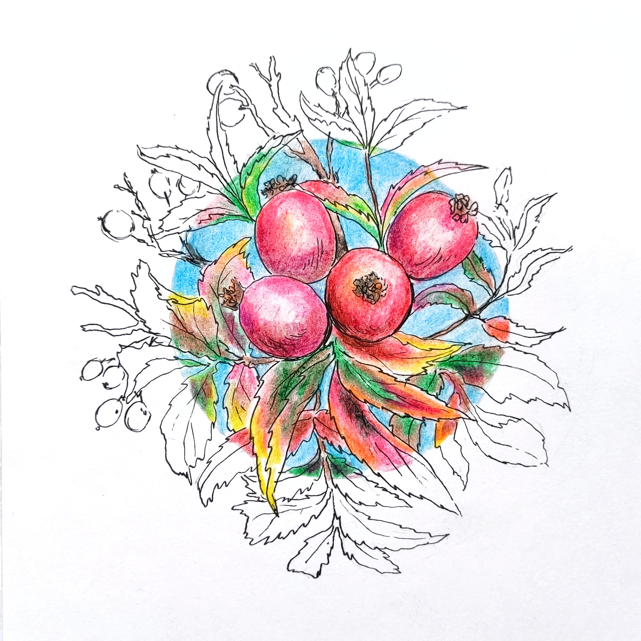 Техника "лайн +цветные карандаши"