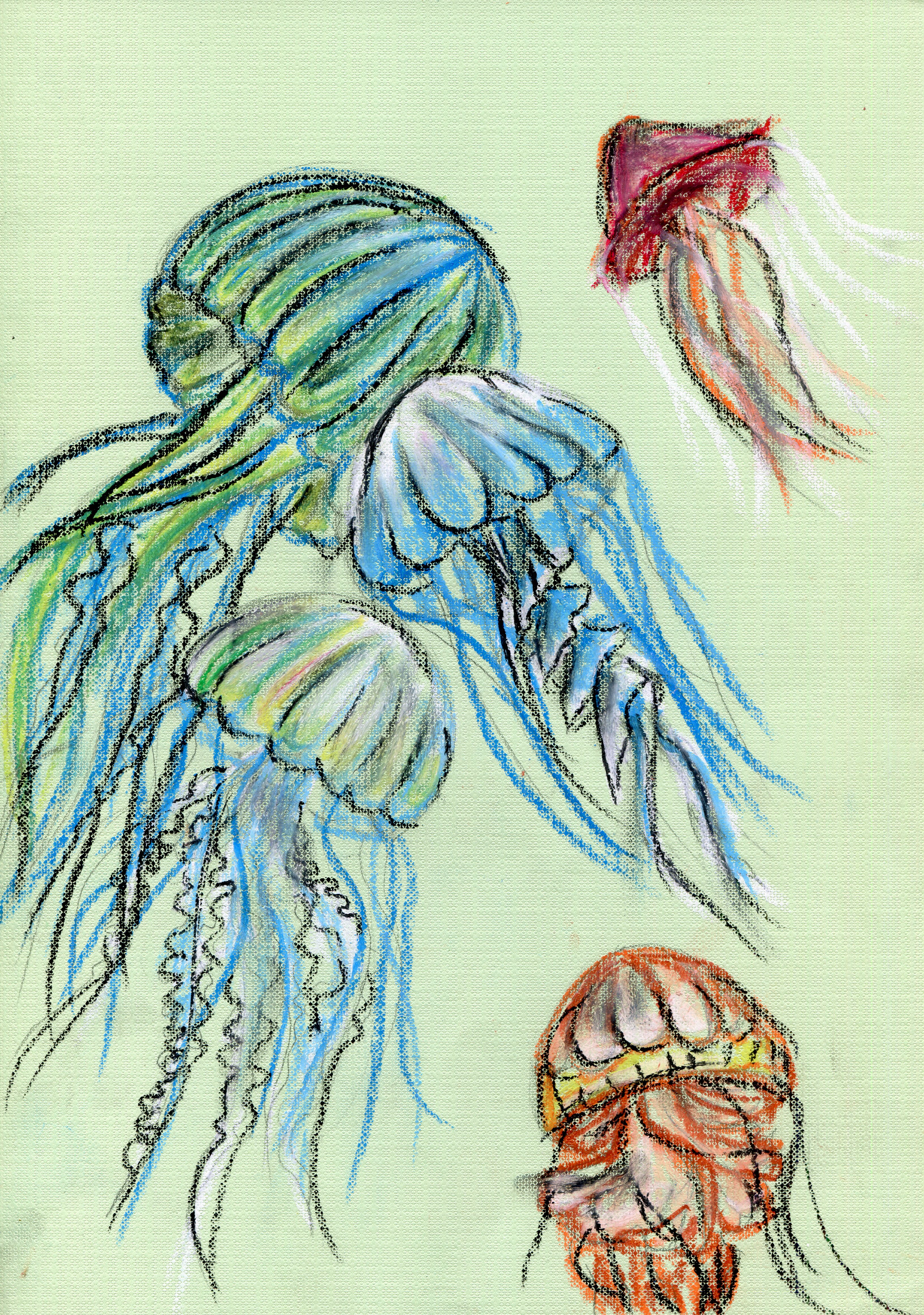 Изображение медуз масляной пастелью