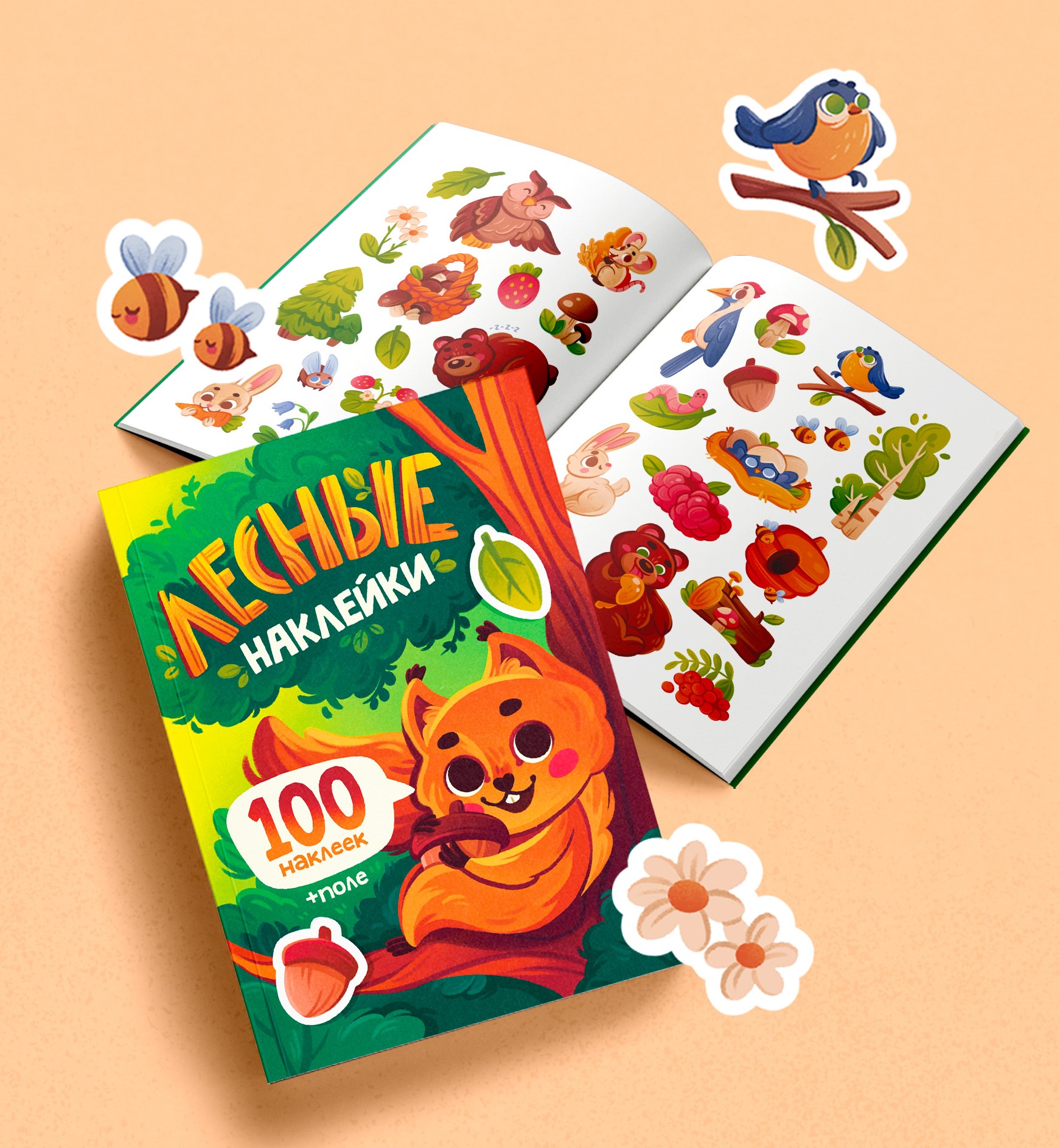 Обложка и разворот с наклейками на лесную тематику
