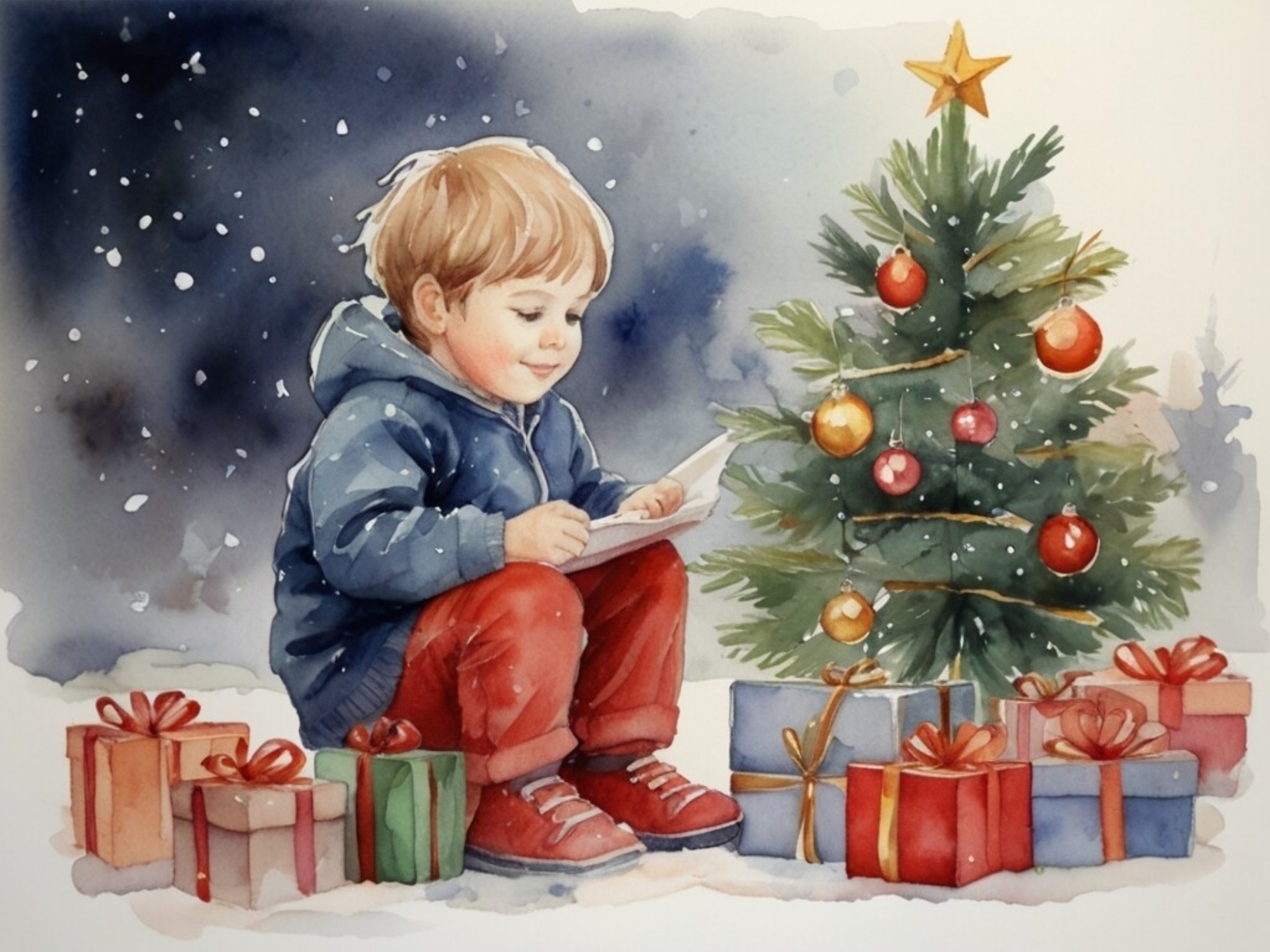 Мальчик читает письмо от Деда Мороза