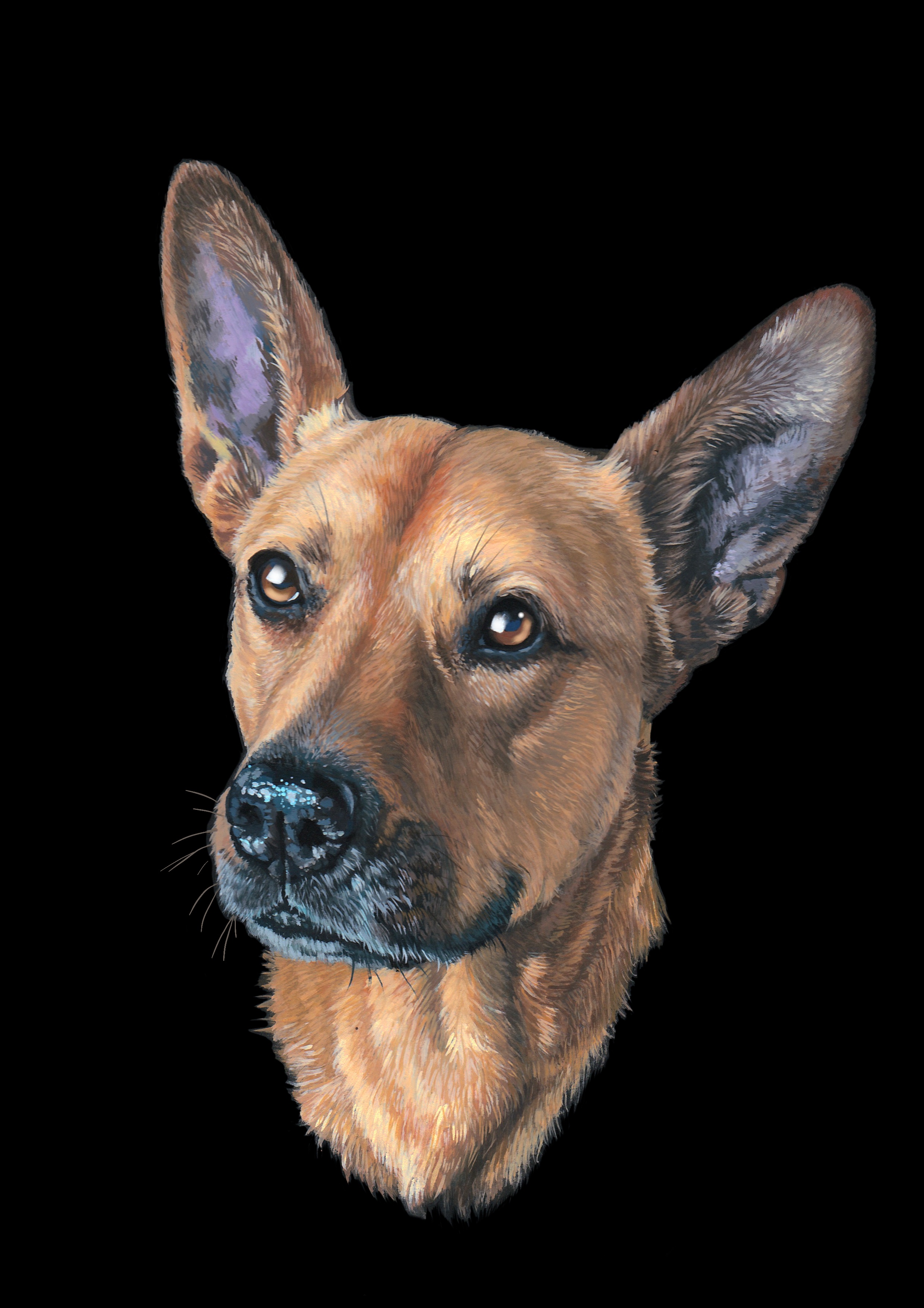 Портрет собаки акрилом на чёрной бумаге А4