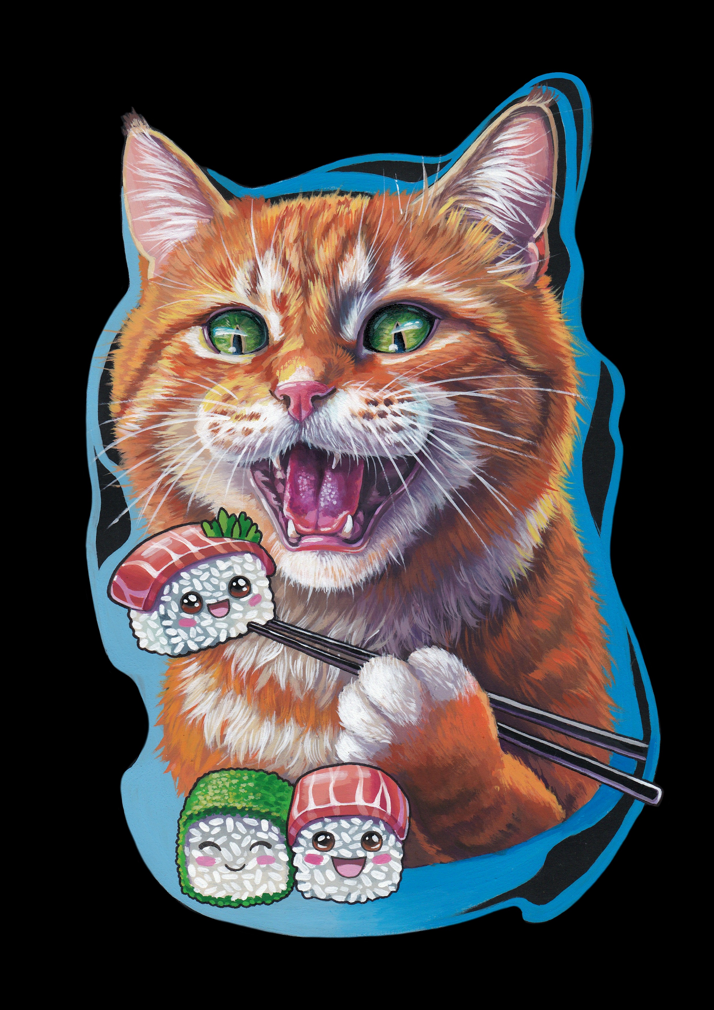 Портрет рыжего кота на чёрной бумаге А4
