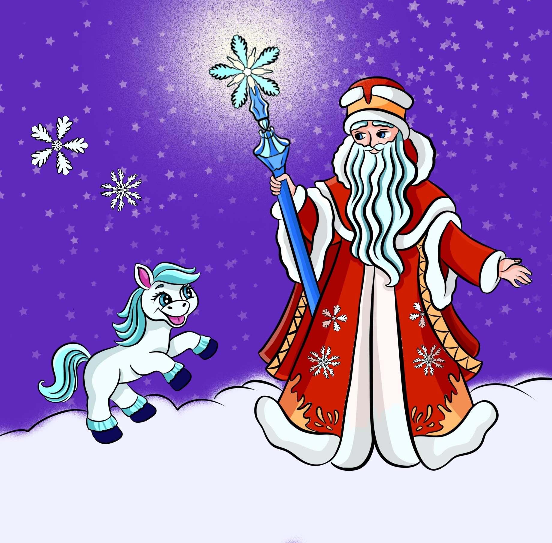Дед Мороз и лошадка.