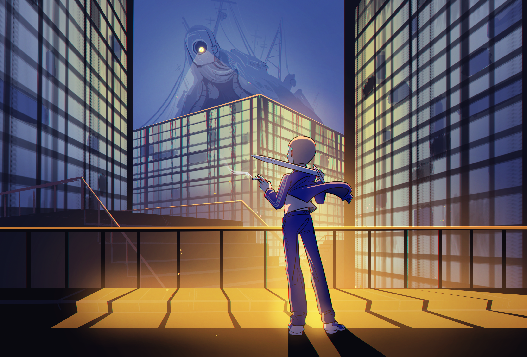 существо склонилось над городом паразитируя на людях, высасывая их жизнь своим бетонным ликом, только один человек может его остановить