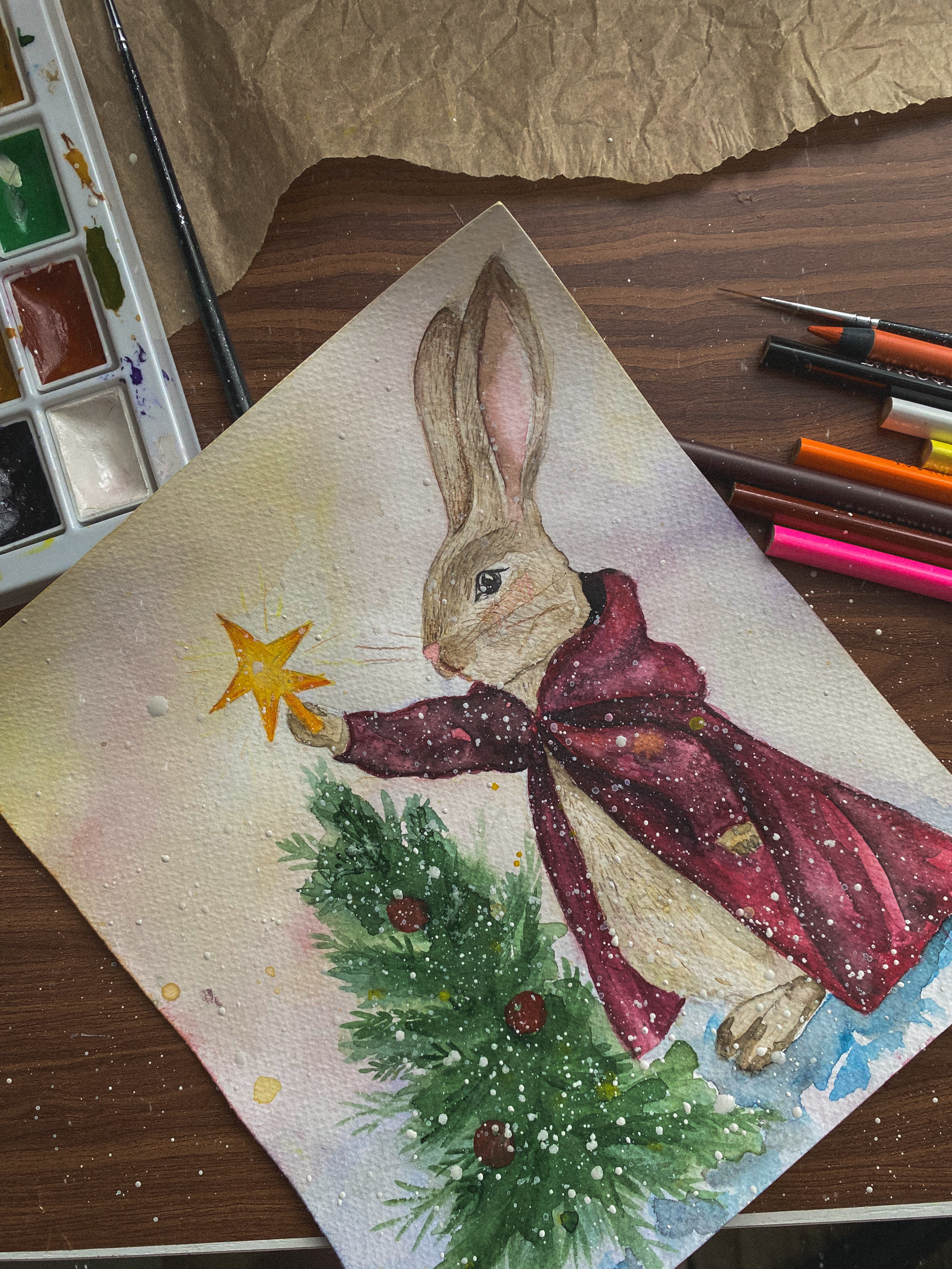 Новогодняя иллюстрация акварелью