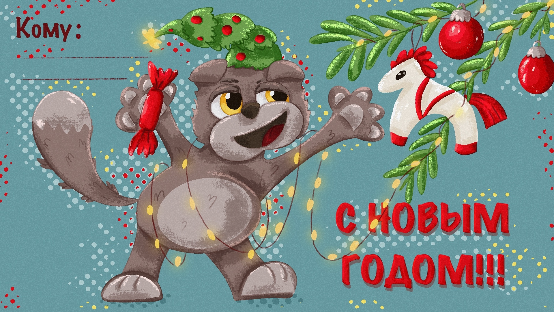 Иллюстрация для конкурса Новогодних открыток Skillbox