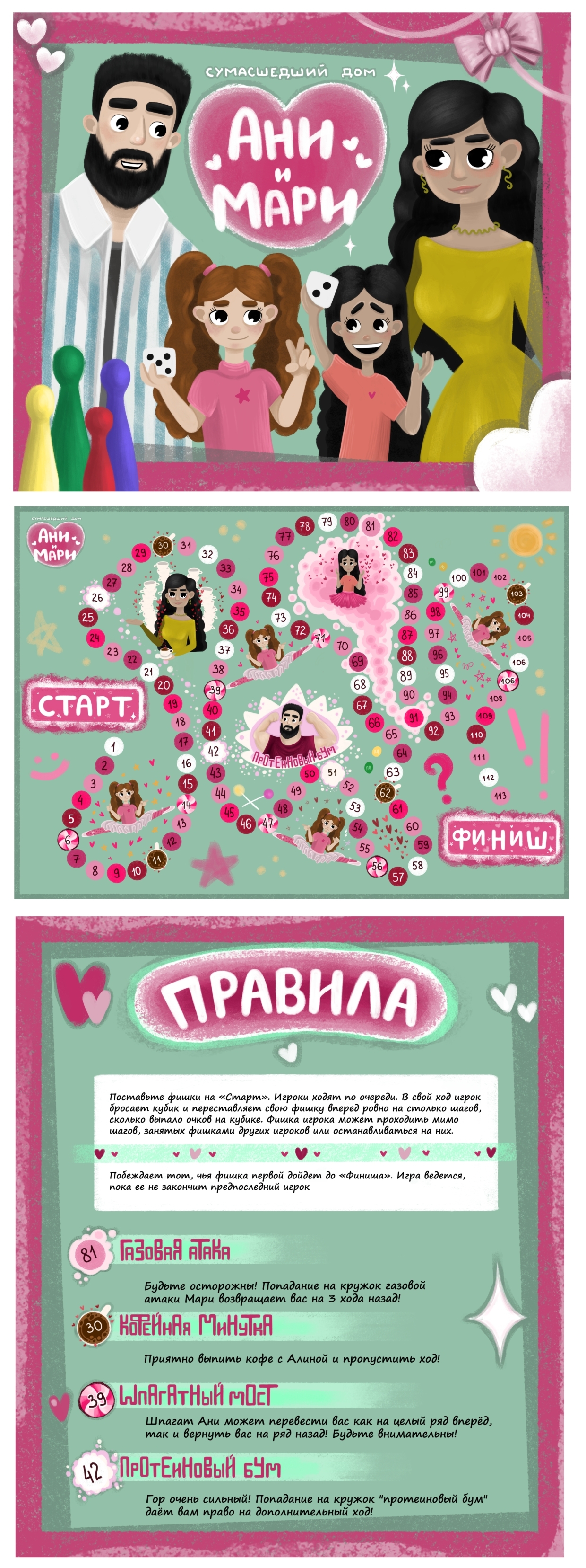 Оформление настольной игры "Сумасшедший дом Мари и Ани" 3+